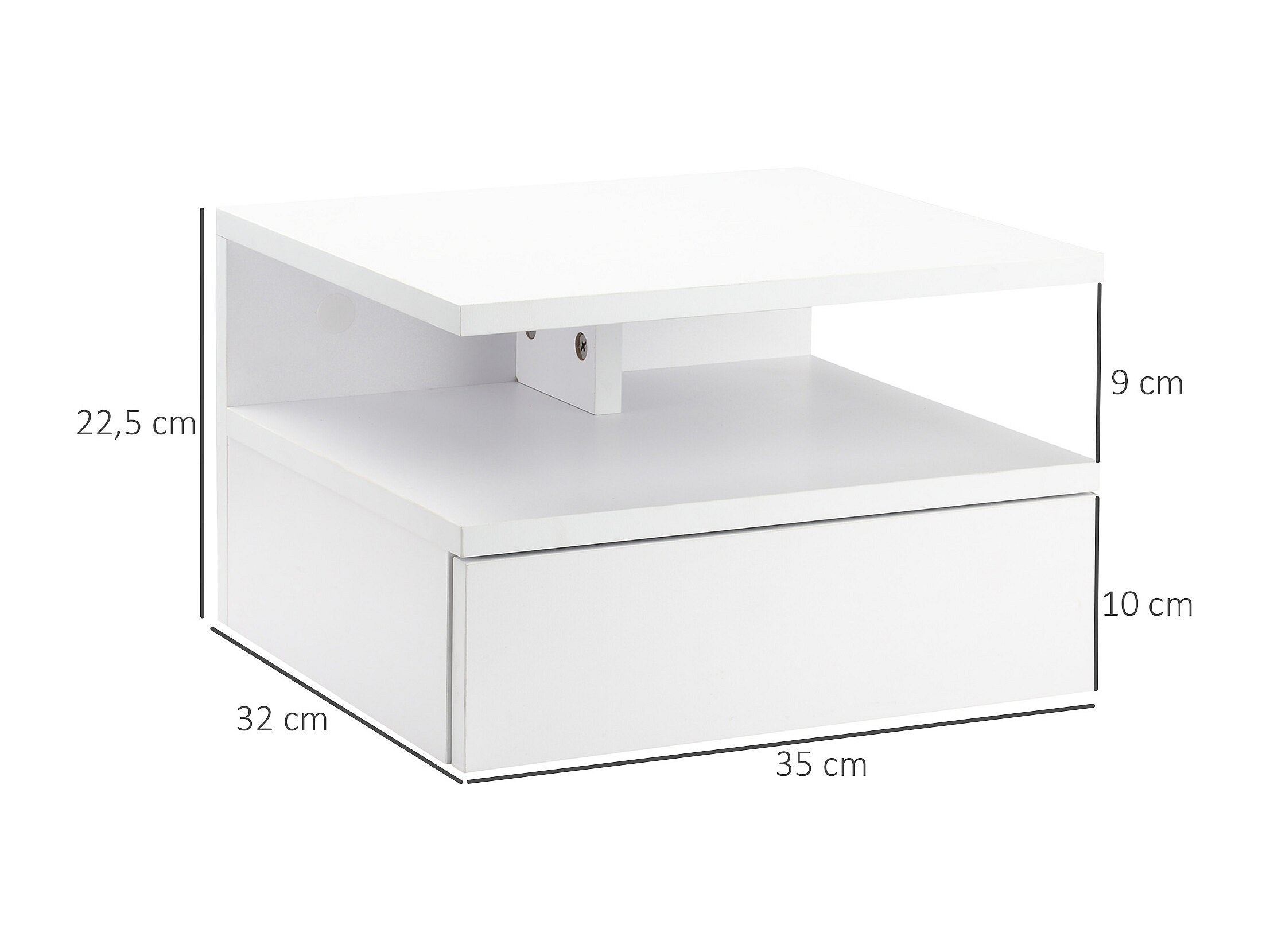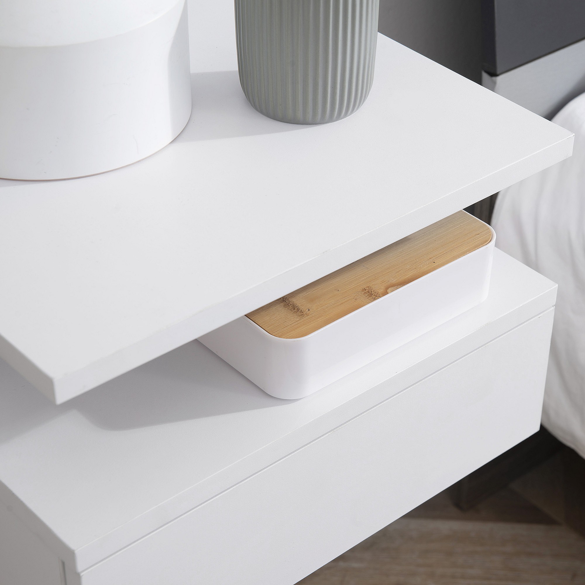 Lot de 2 tables de chevet murales - lot de 2 tables de nuit - tiroir coulissant, plateau - panneaux particules blanc