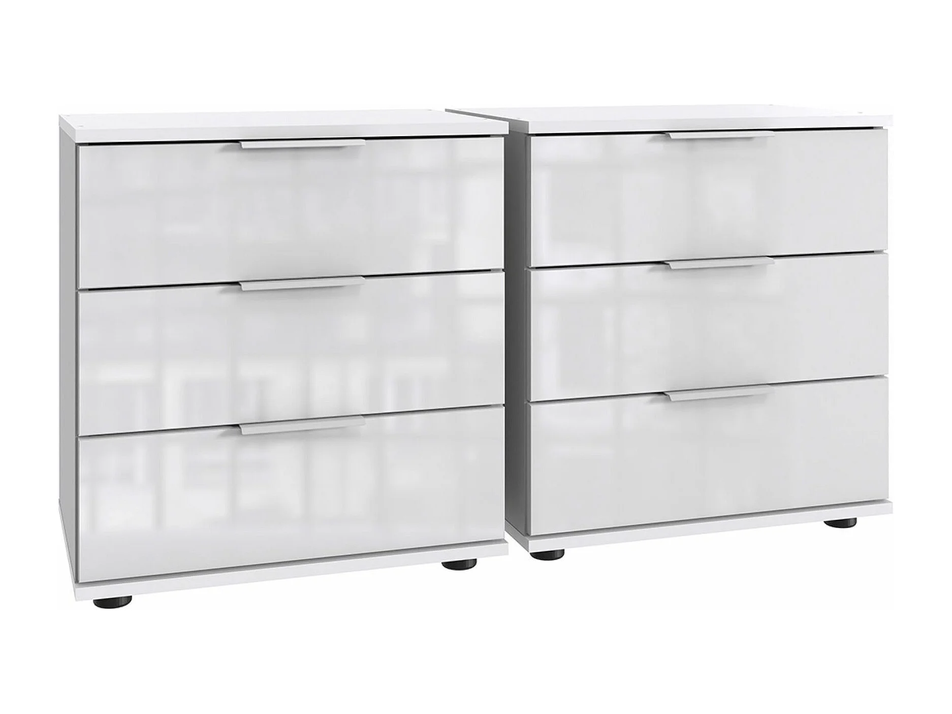 Lot de 2 tables de chevet, table de nuit avec 3 tiroirs coloris blanc, verre blanc