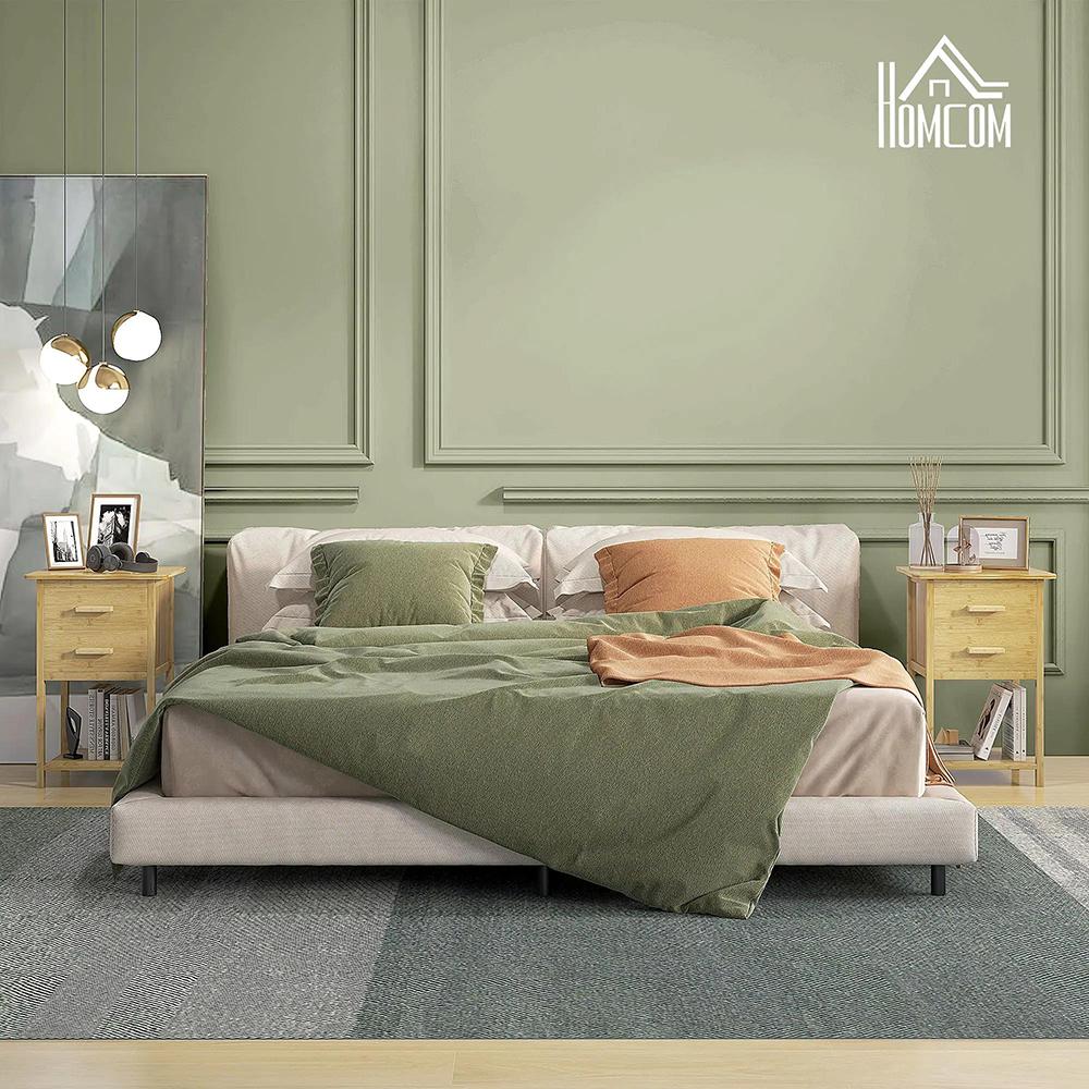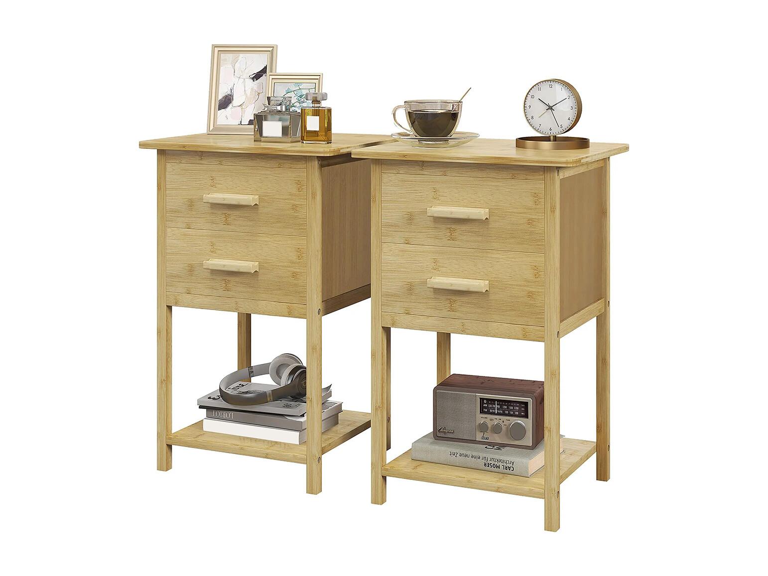 Lot de 2 tables de chevet table de nuit en bambou avec 2 tiroirs et 1 étagère 40 x 34 x 60 cm, naturel