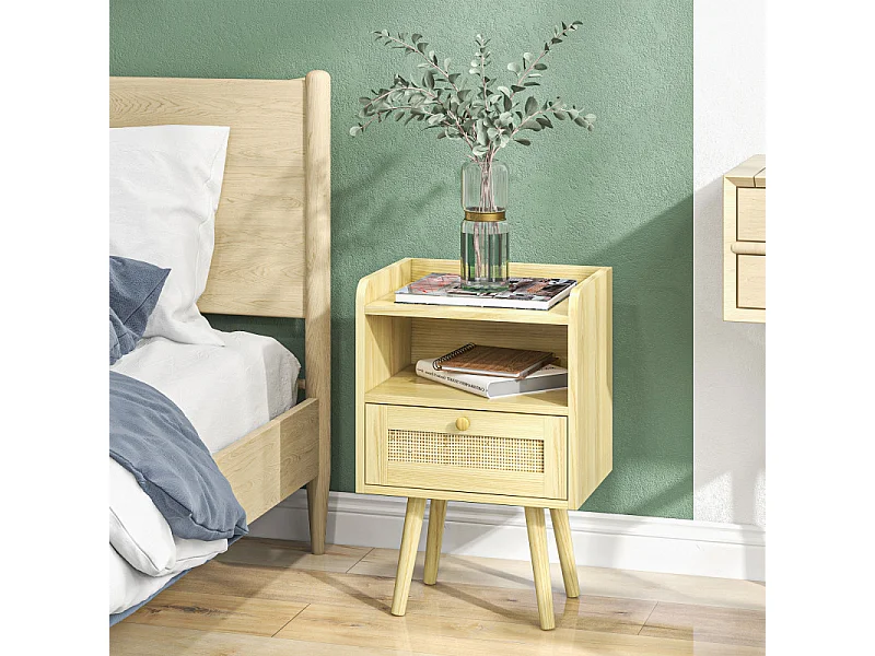 Table de chevet, design rattan, bois, naturel (40x40x48.4 cm)