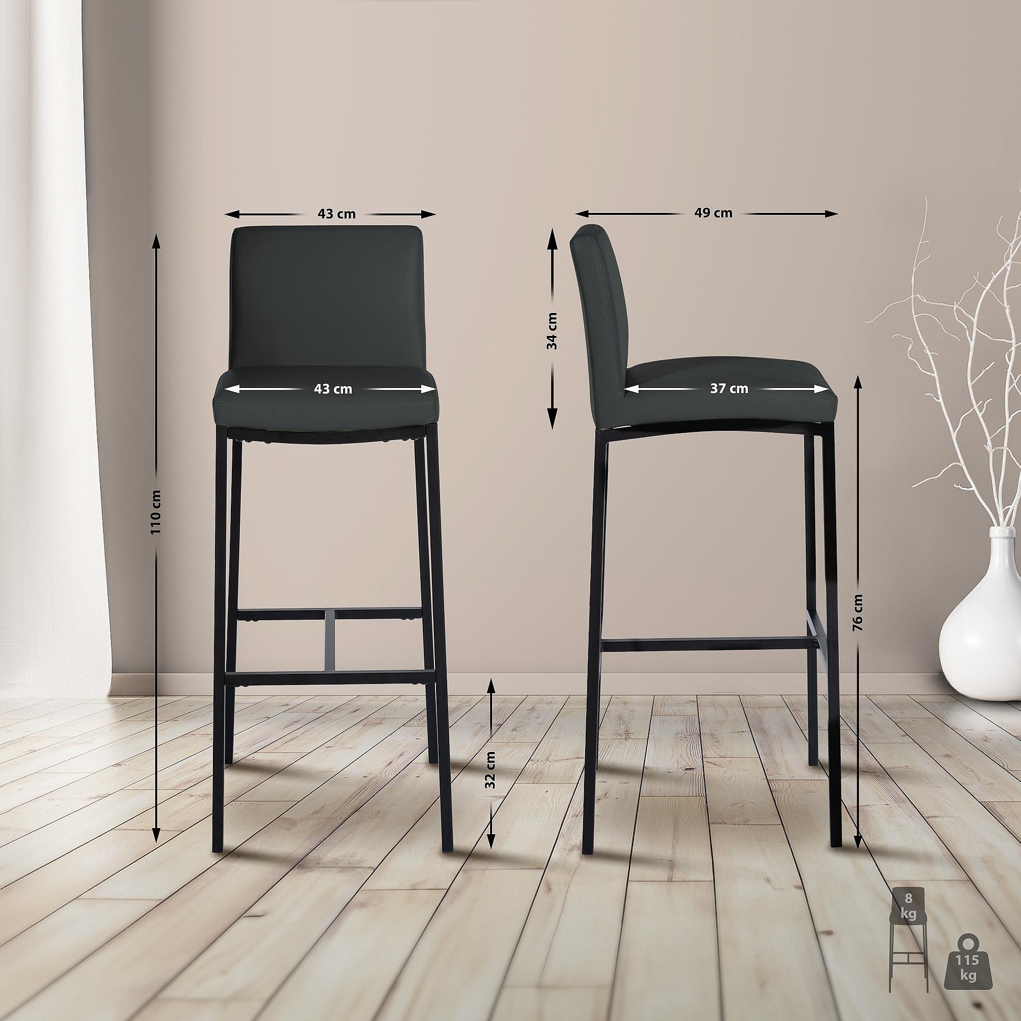 Lot de 2 Tabouret de bar - Similicuir - Gris foncé - Freeport