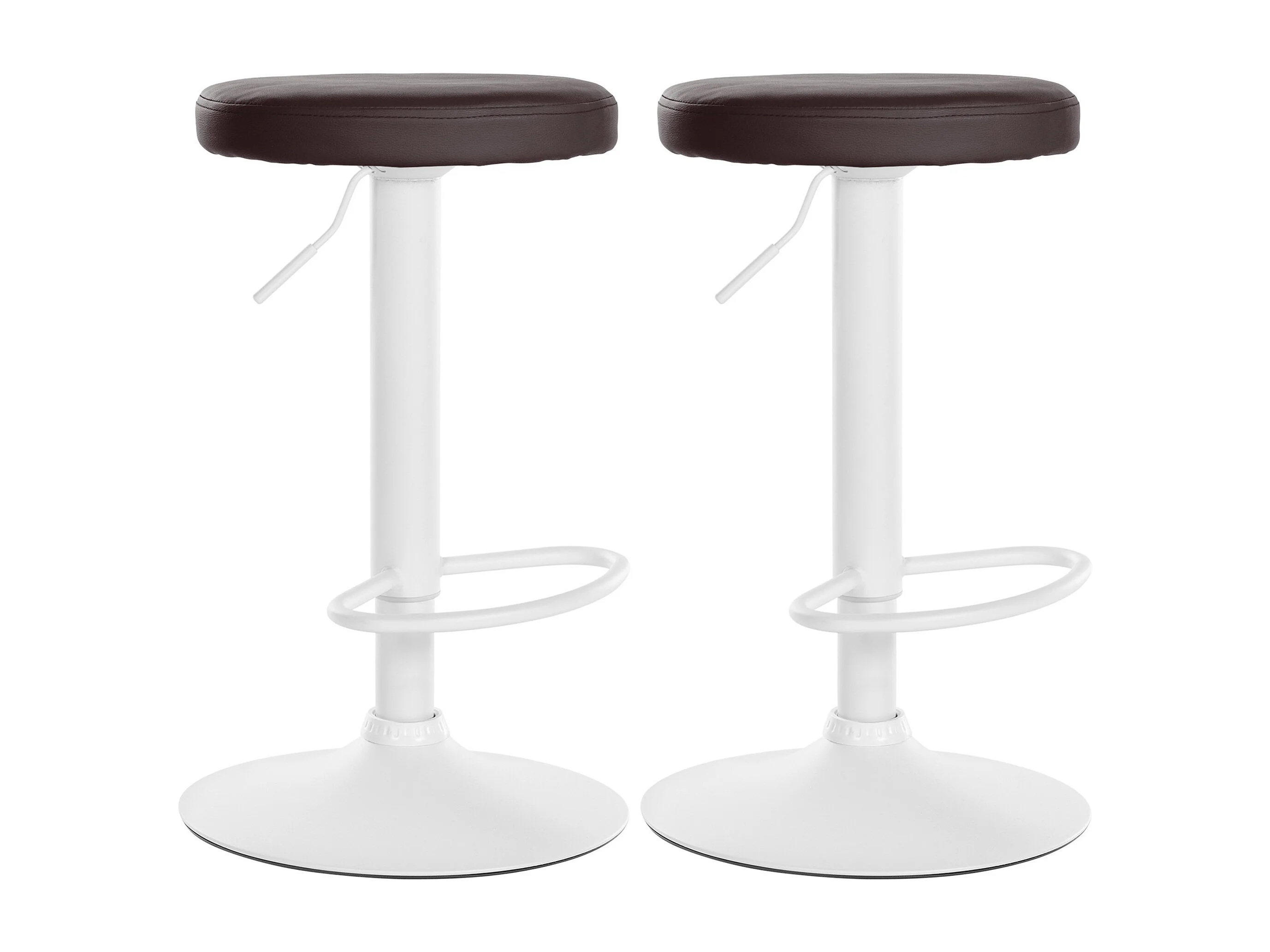 Lot de 2 Tabouret de bar - Similicuir & Métal blanc mat - Marron - Ponte