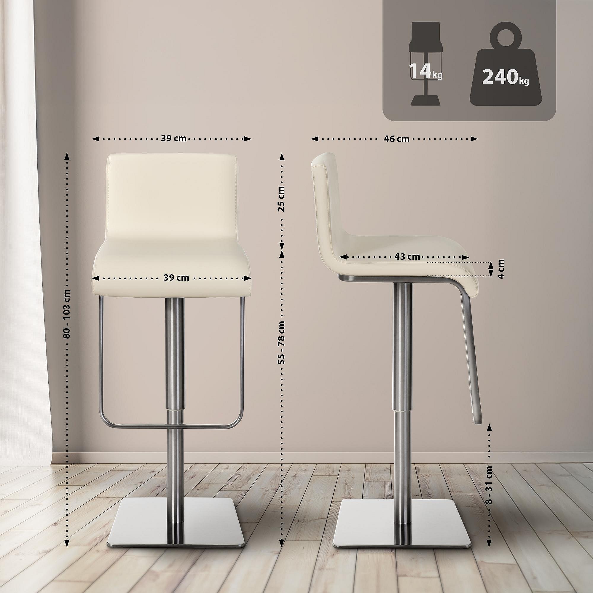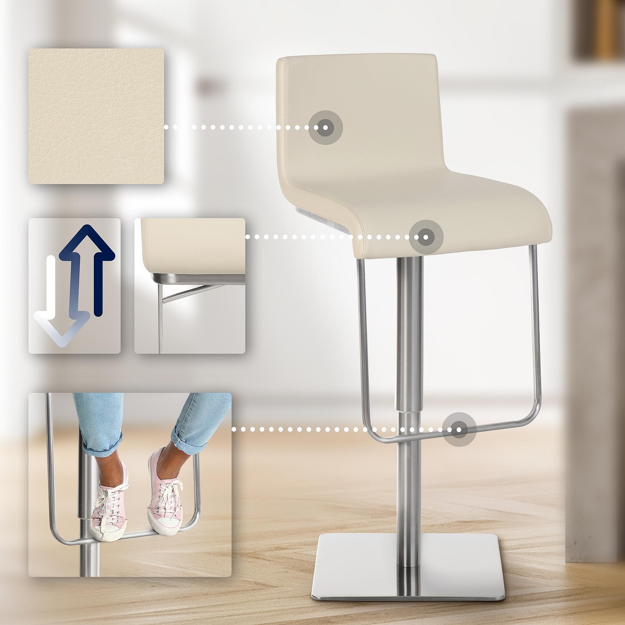 Lot de 2 Tabouret de bar - Similicuir & Acier inoxydable - Crème - Limon