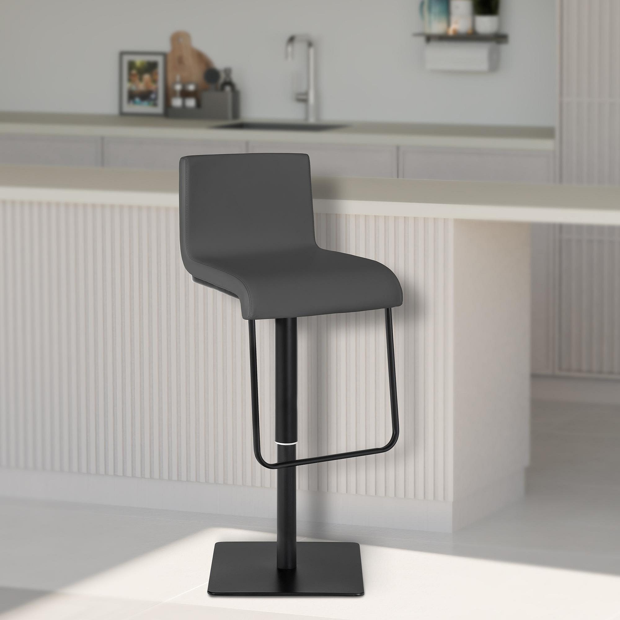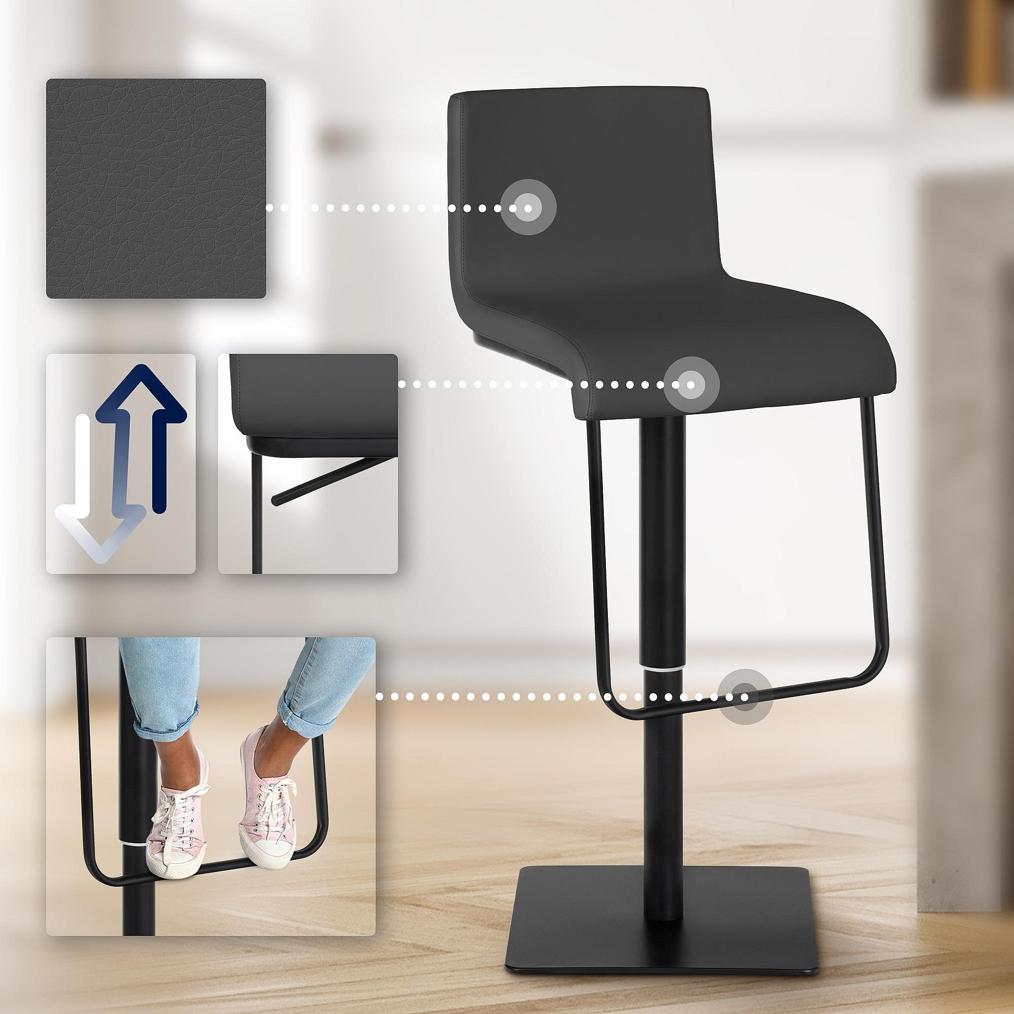 Lot de 2 Tabouret de bar - Similicuir & Noir - Gris - Limon