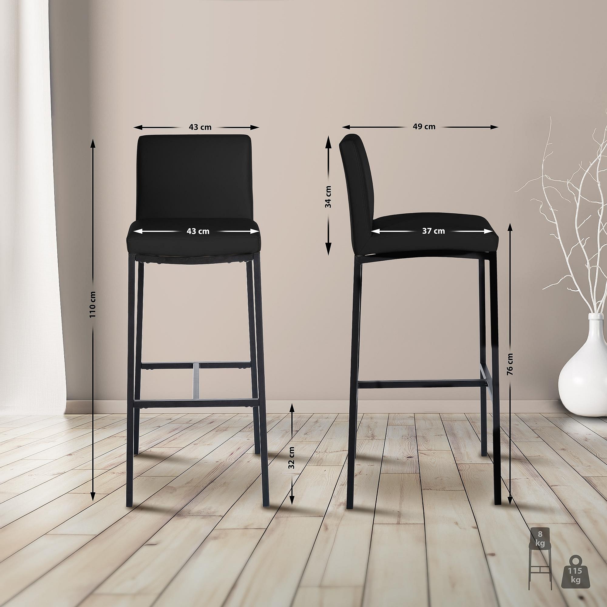 Lot de 2 Tabouret de bar - Similicuir & Métal - Noir - Club