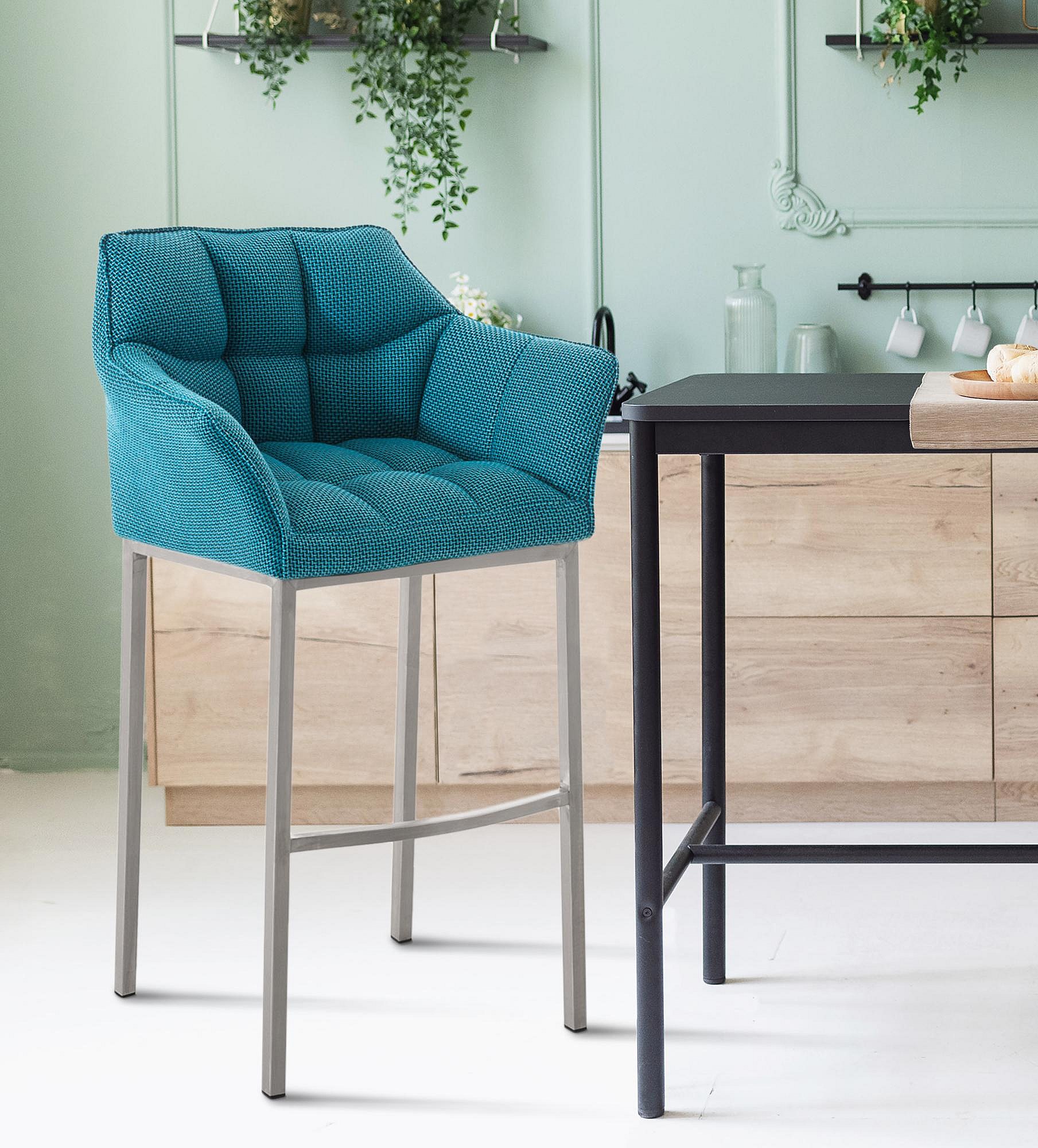 Lot de 2 Tabouret de bar - Tissu & Acier inoxydable - Turquoise - Damaso