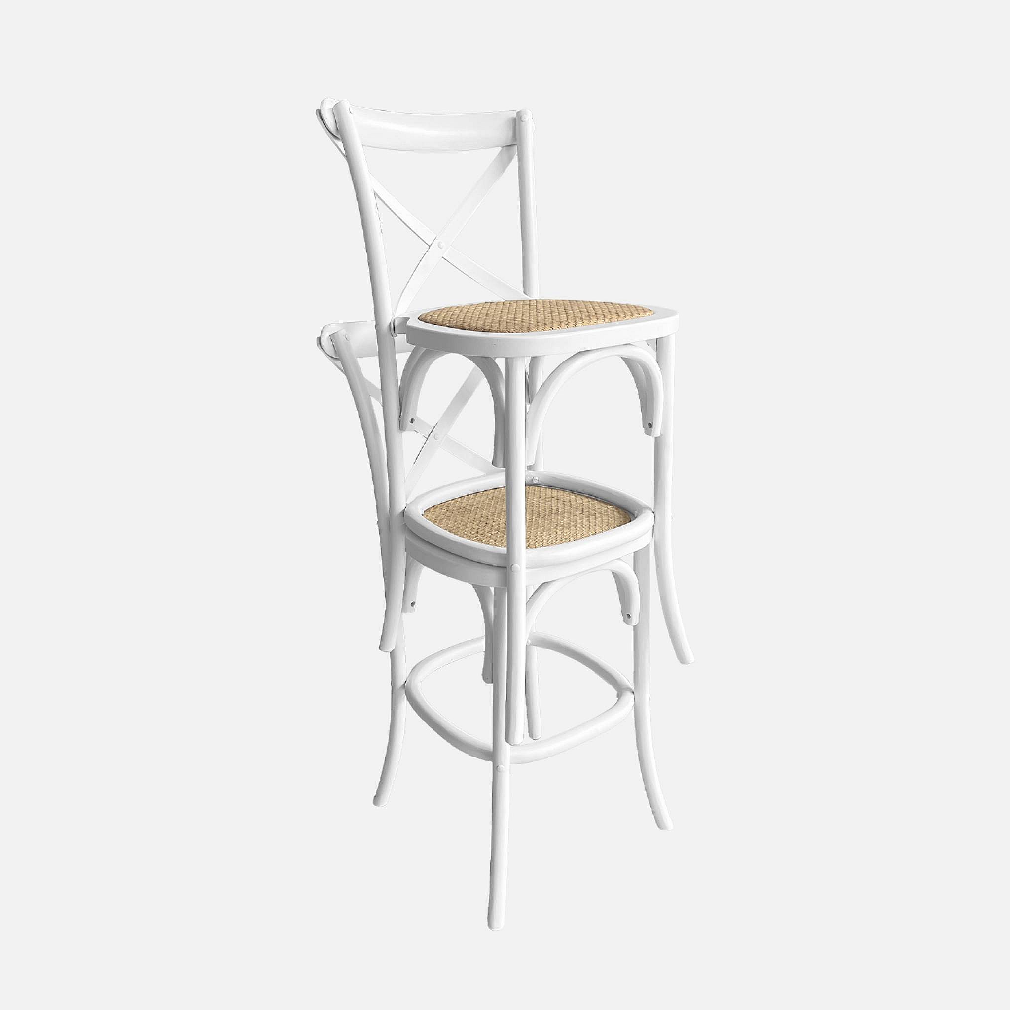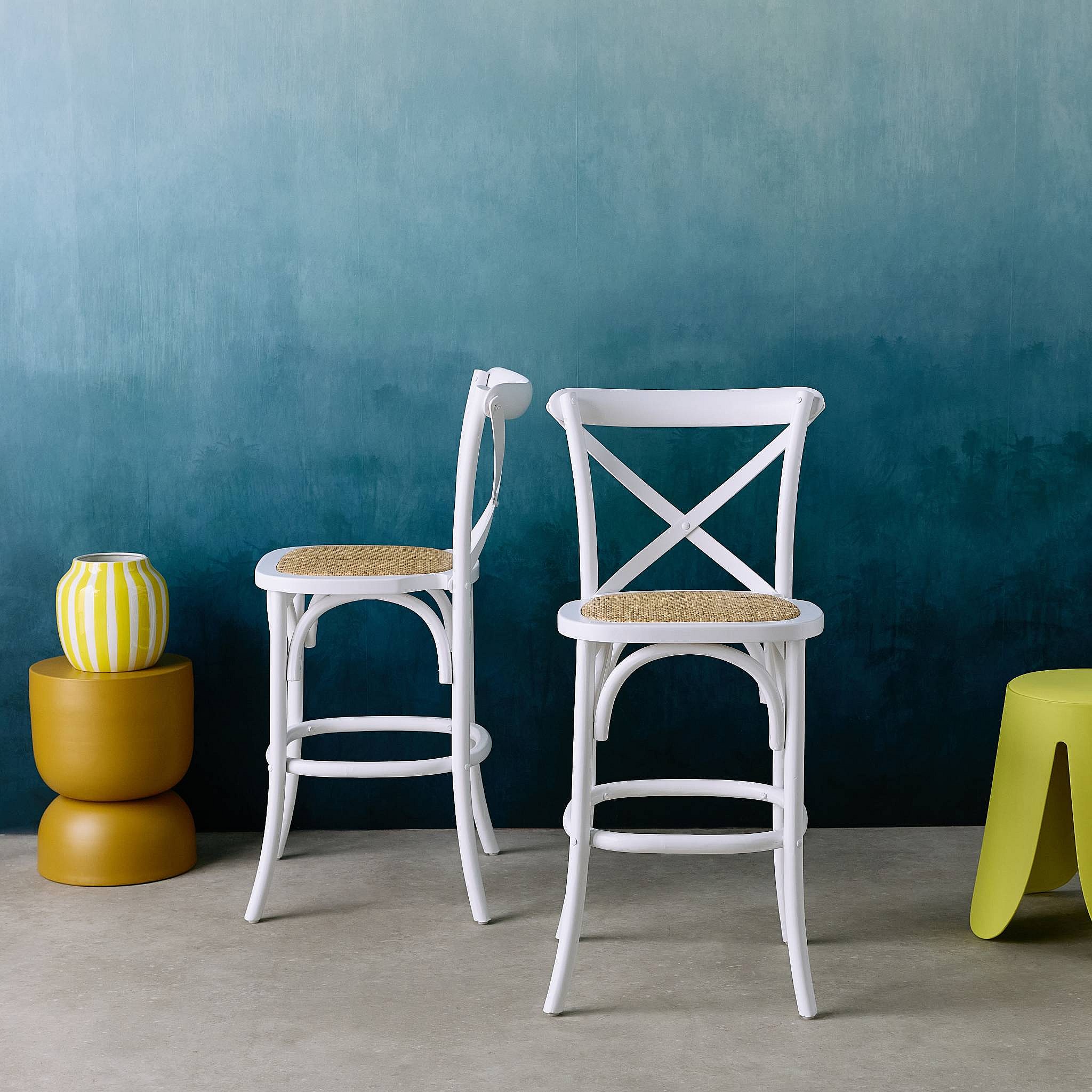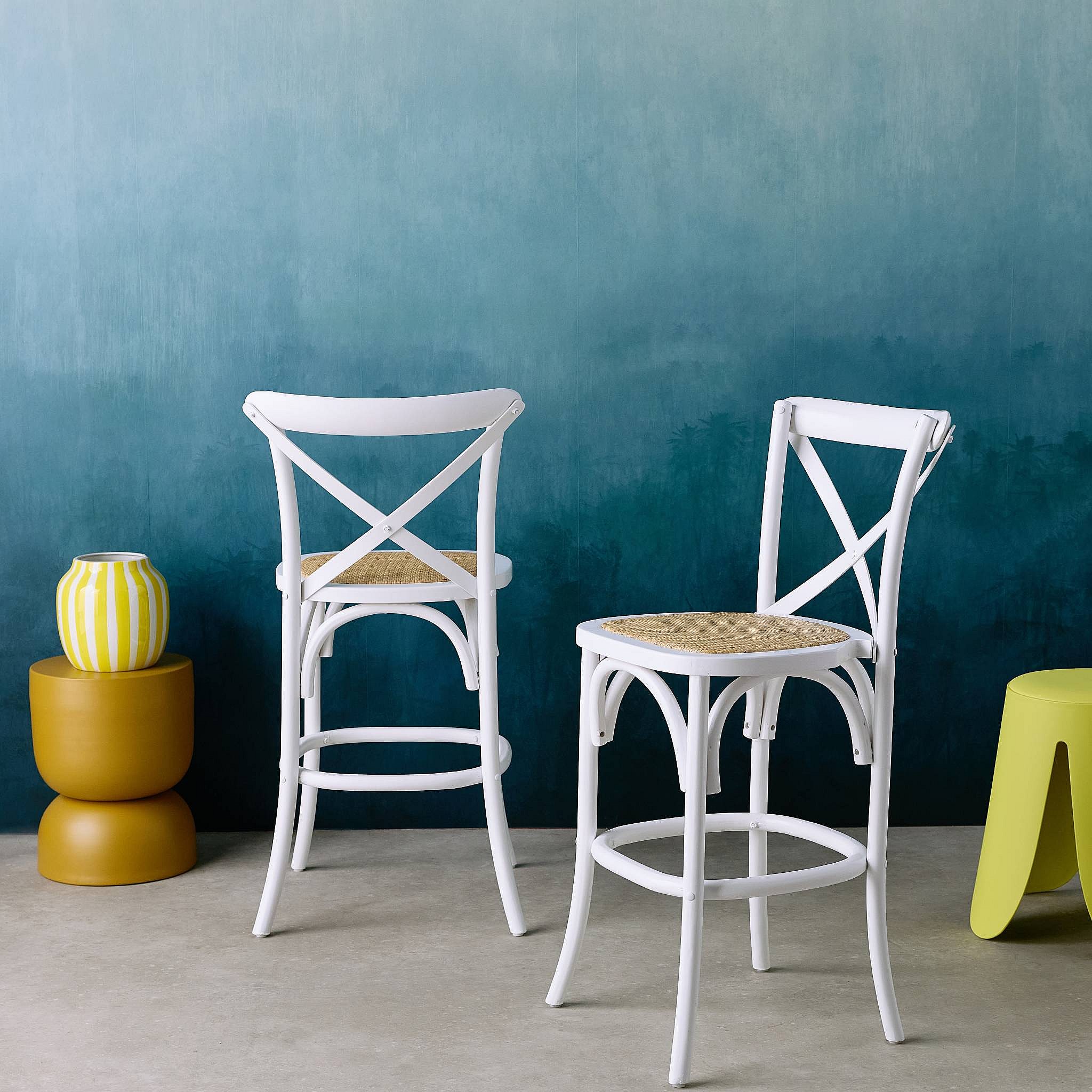 Lot de 2 tabourets de bar bistrot vintage en bois blanc avec repose-pieds