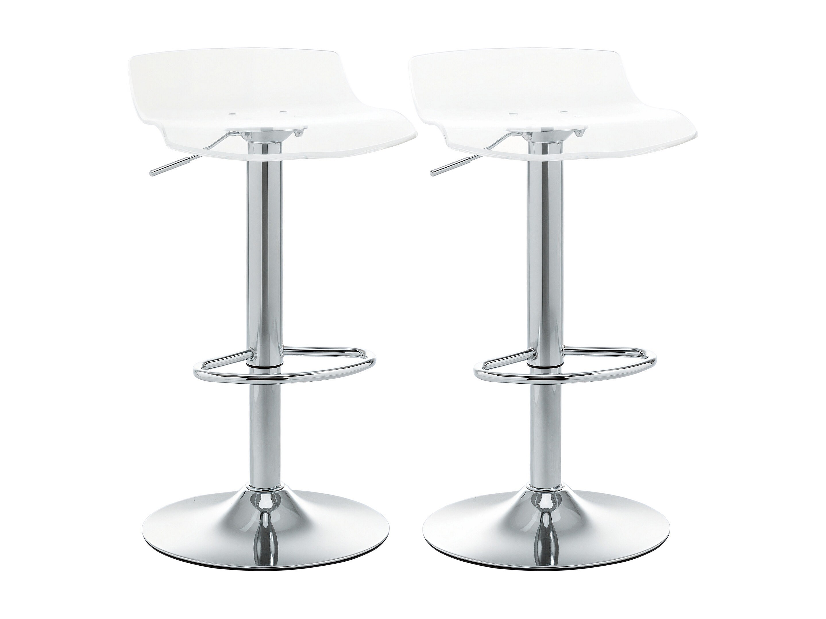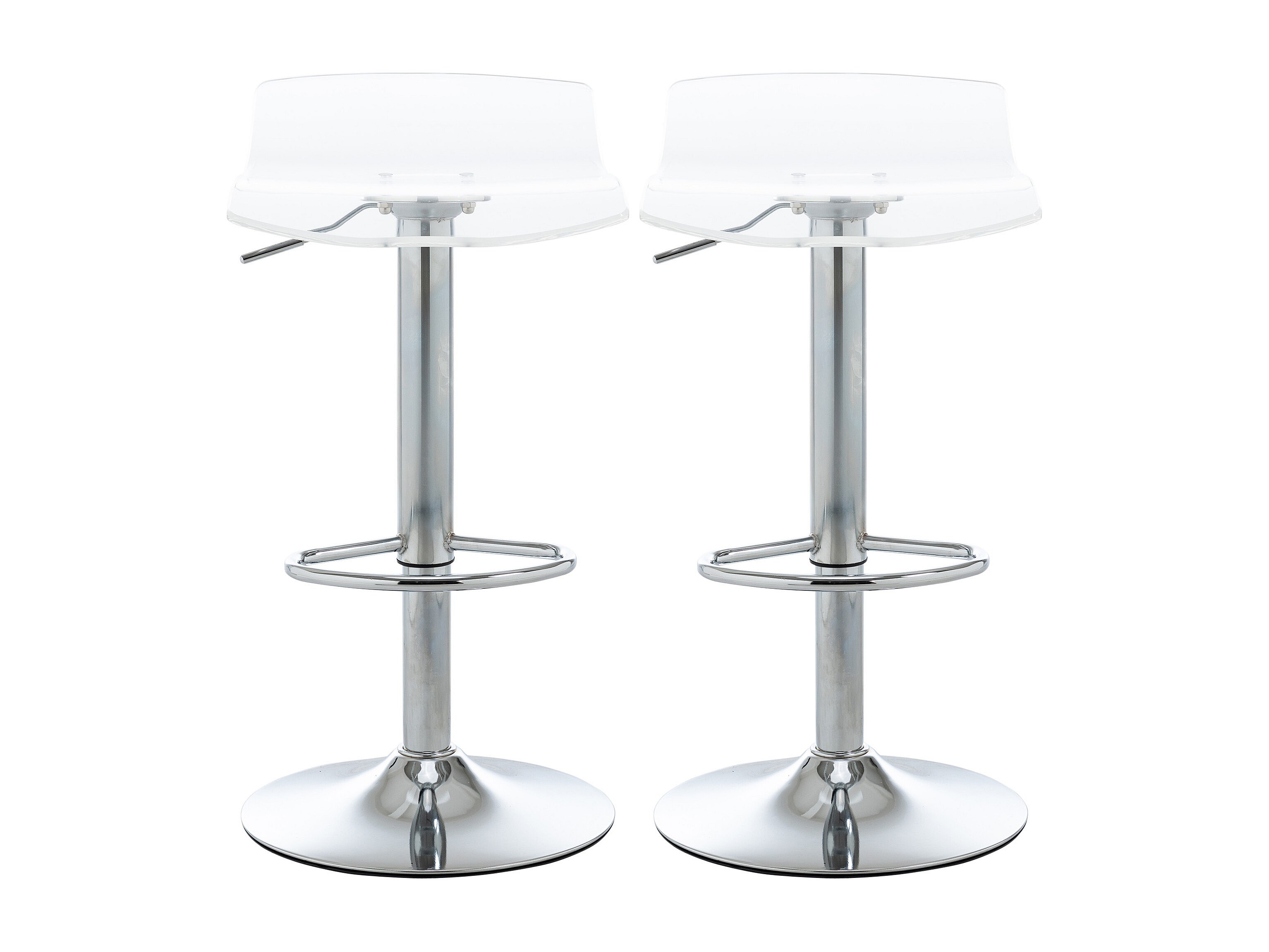 Lot de 2 tabourets de bar design contemporain assise acrylique et piètement métal - pivotant 360° - hauteur réglable avec repose-pieds - transparent