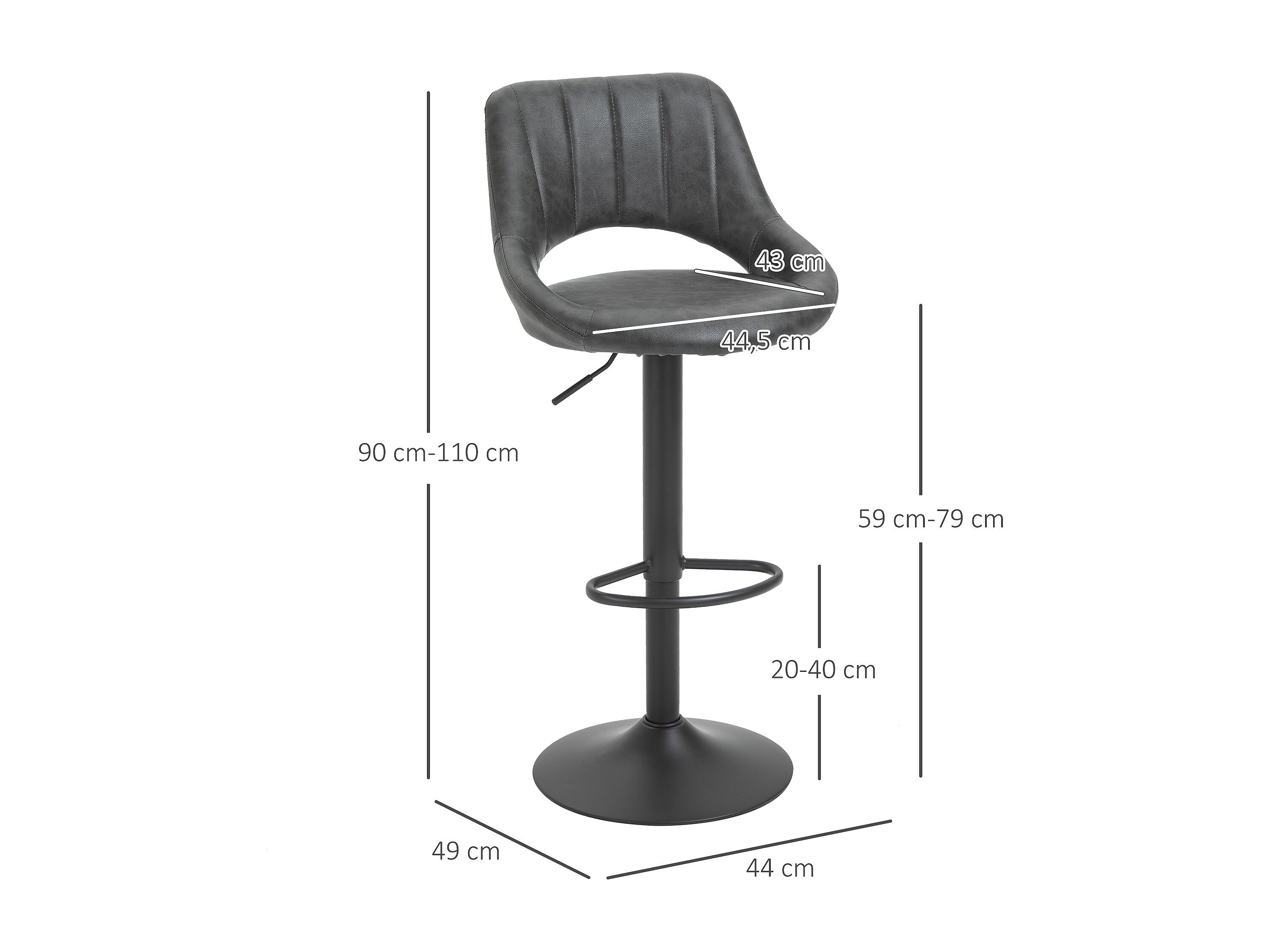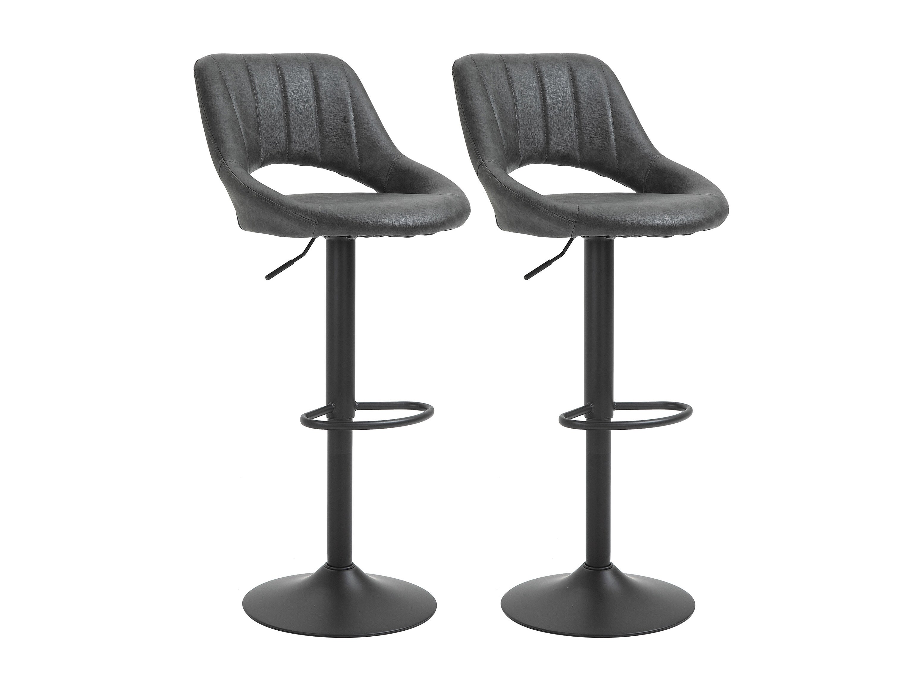 Lot de 2 tabourets de bar Vintage hauteur réglable pivotant avec repose-pied PU avec surpiqûres gris foncé
