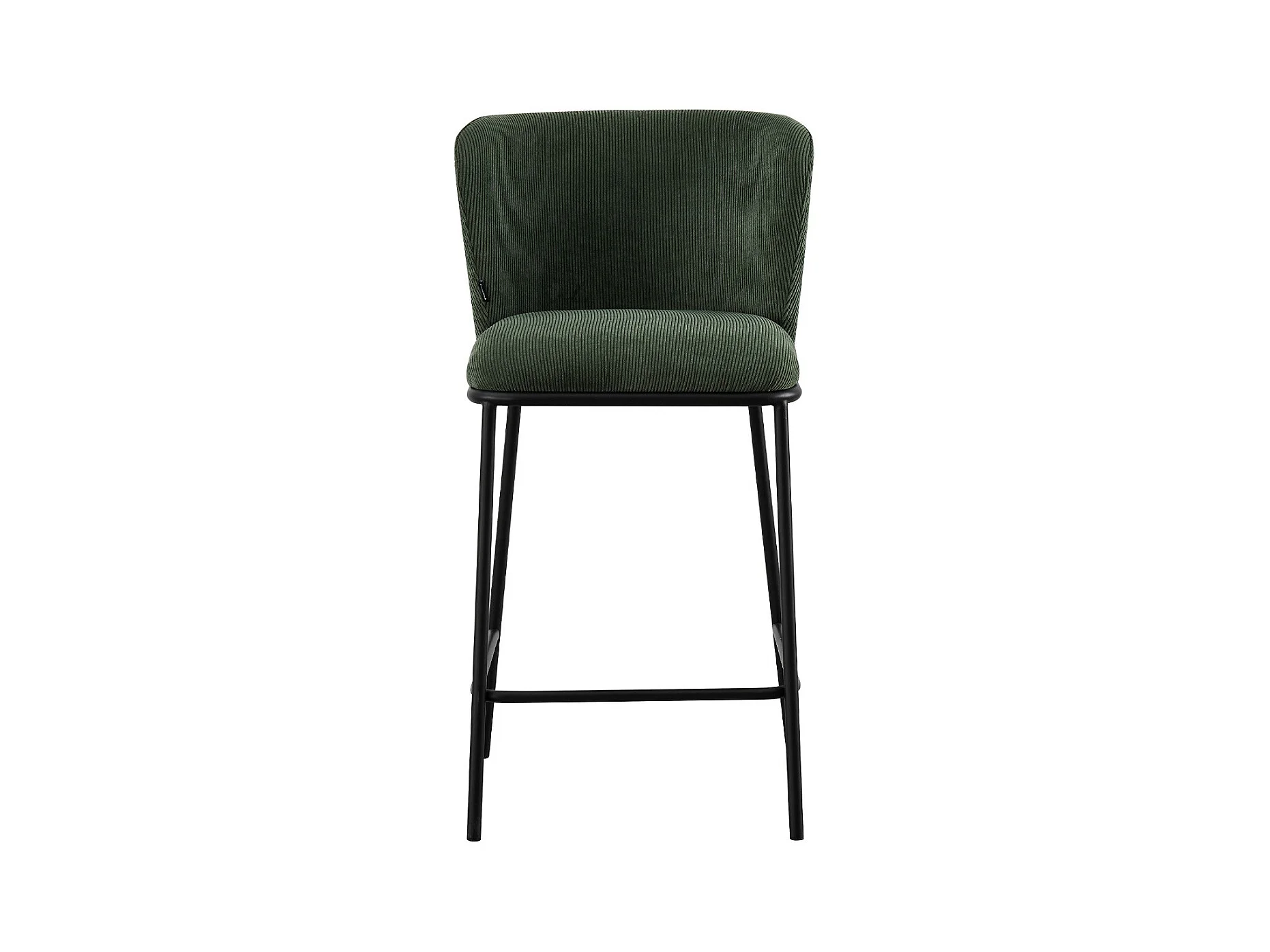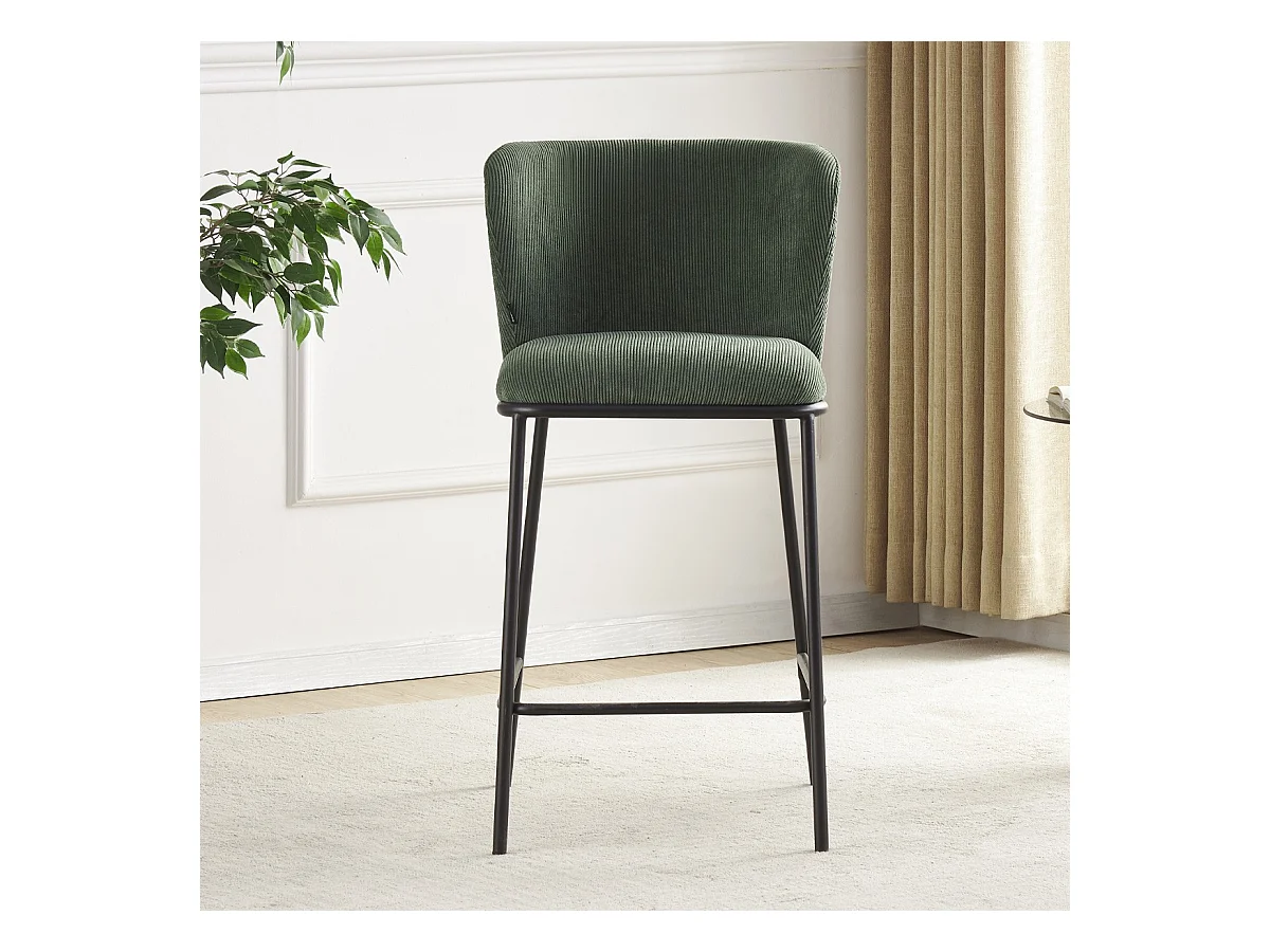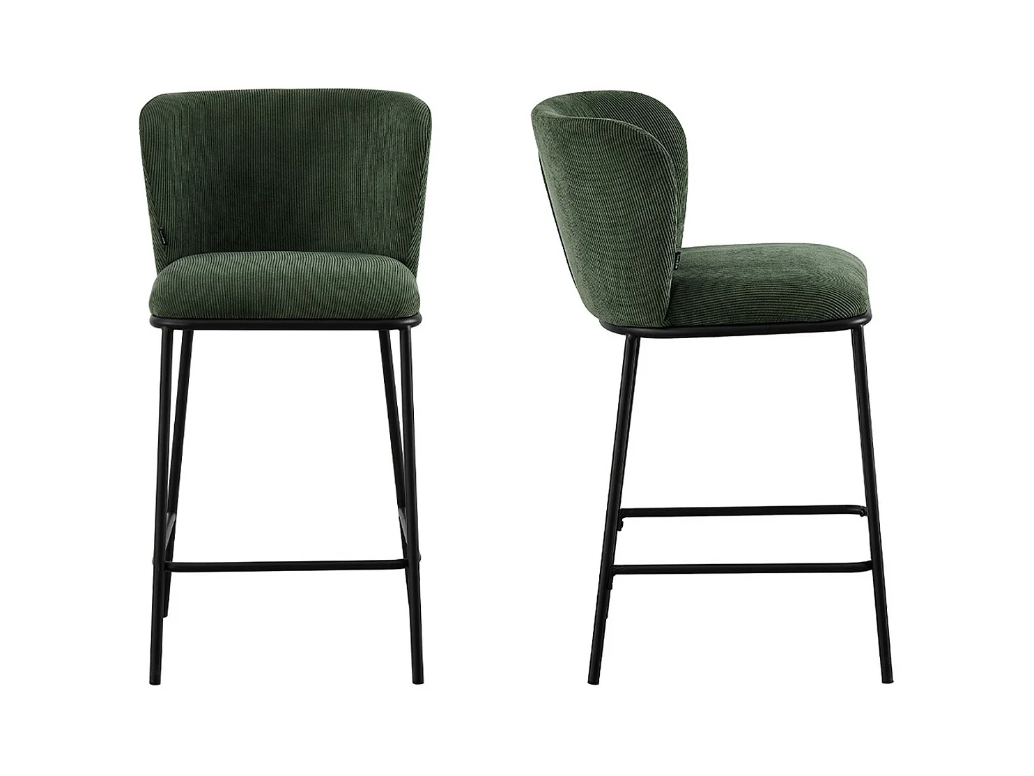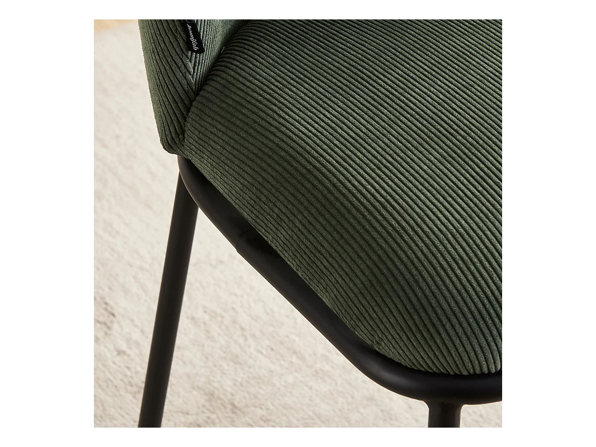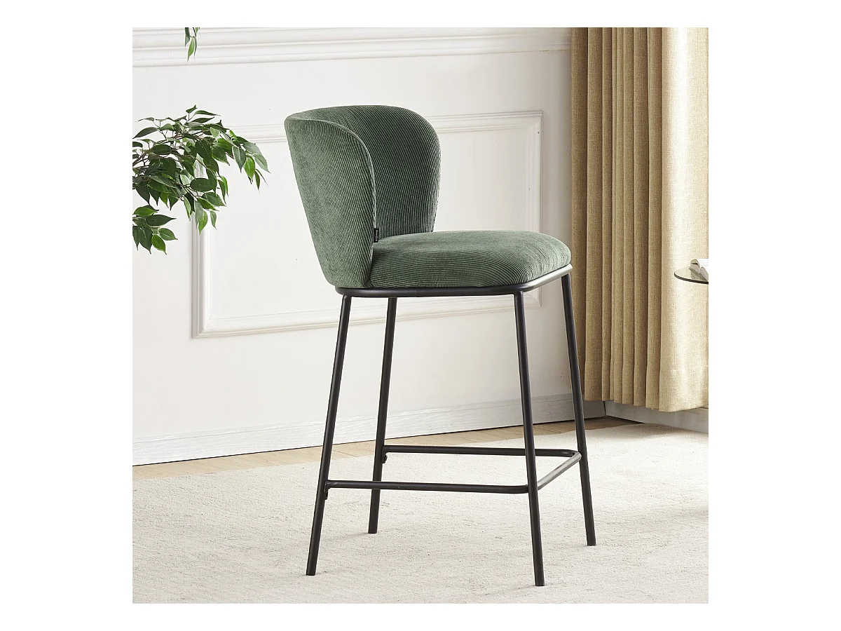 Lot de 2 tabourets de bar en velours côtelé vert kaki, piètement noir - Toma