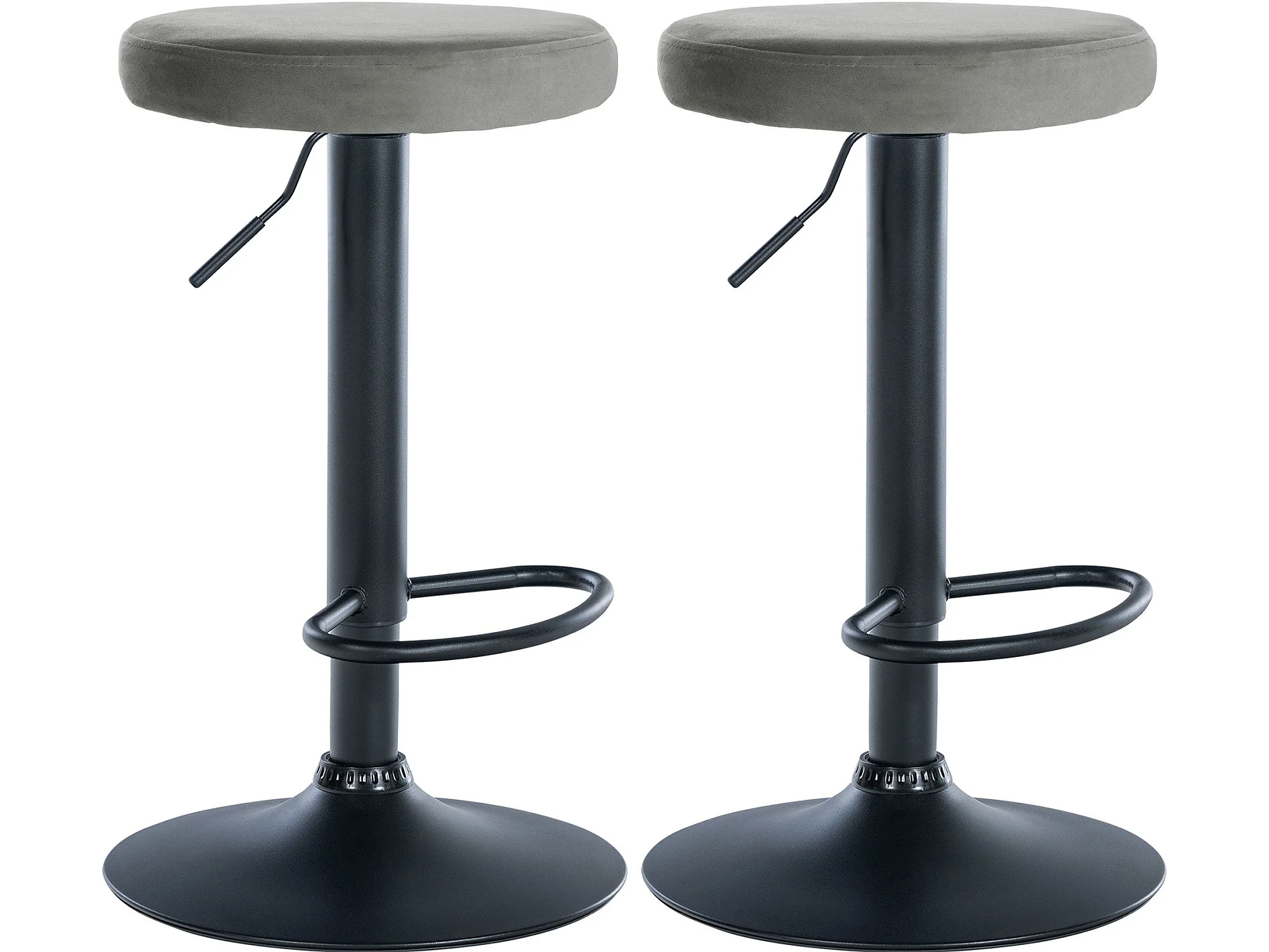 Lot de 2 Tabourets de bar - Velours & Métal - Gris - Ponte