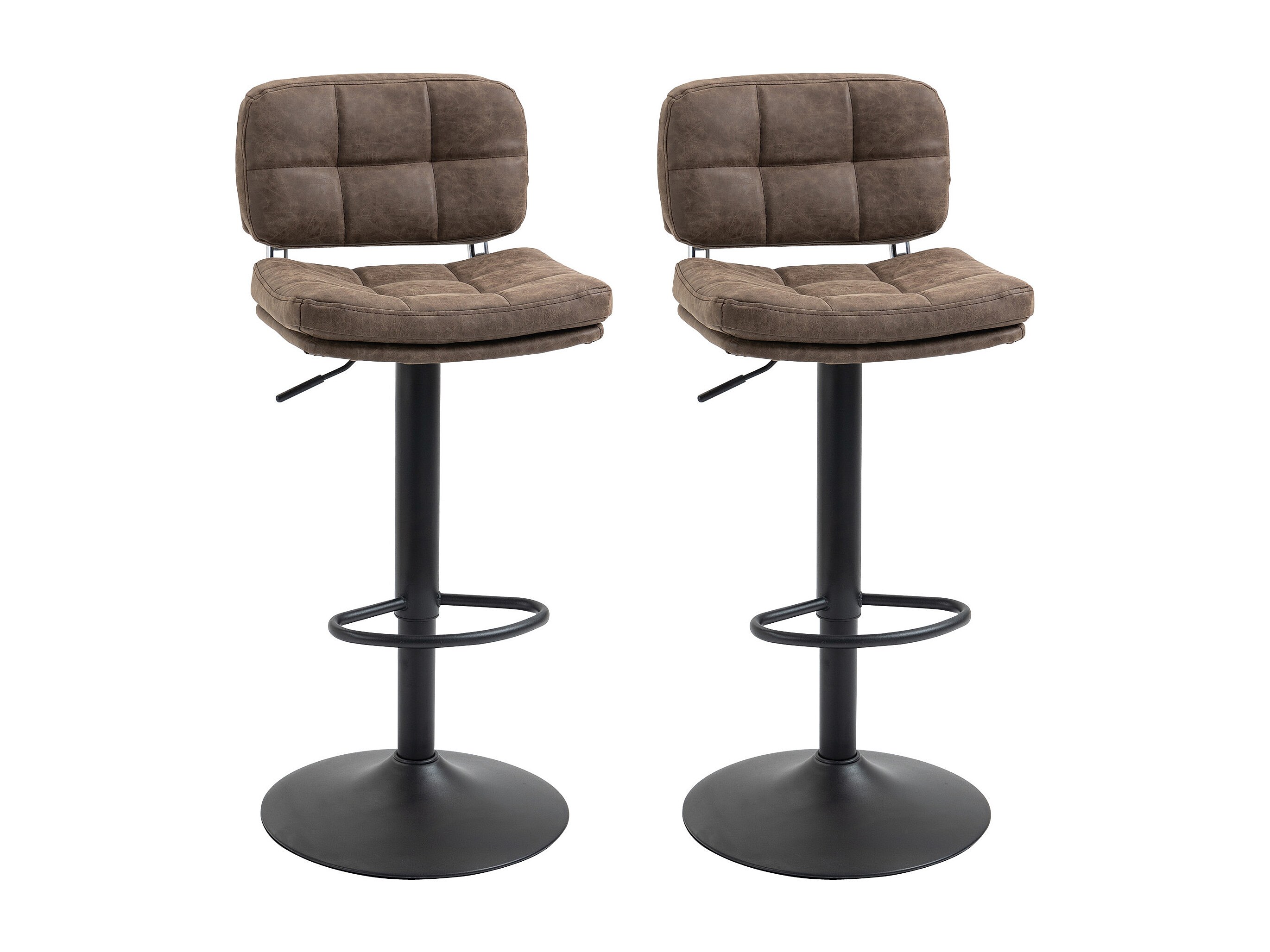 Lot de 2 tabourets de bar Vintage capitonné - pivotant, réglable - repose-pied - revêtement synthétique marron effet vieilli
