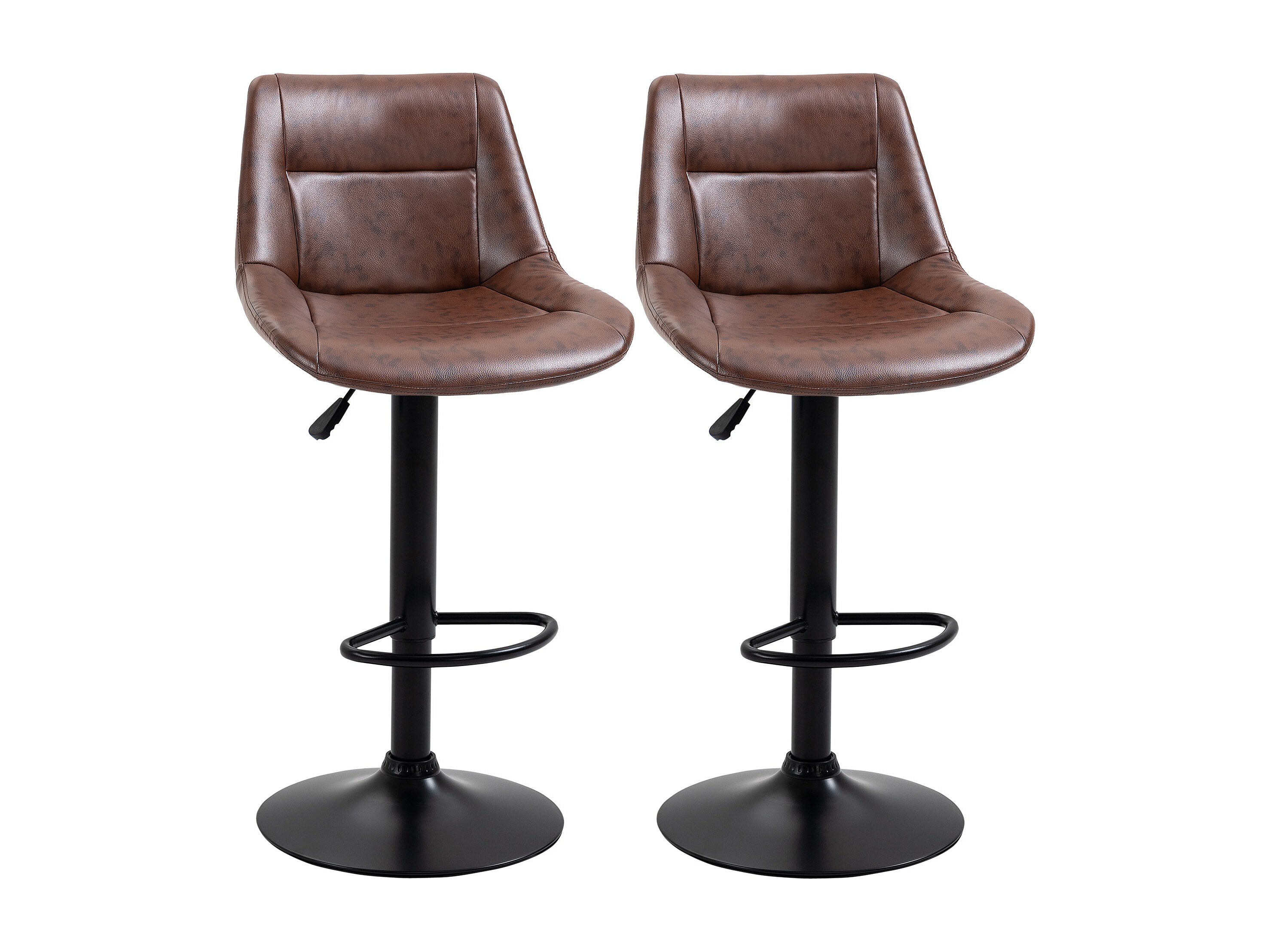 Lot de 2 tabourets de bar Vintage pivotant réglable - repose-pied - revêtement synthétique marron