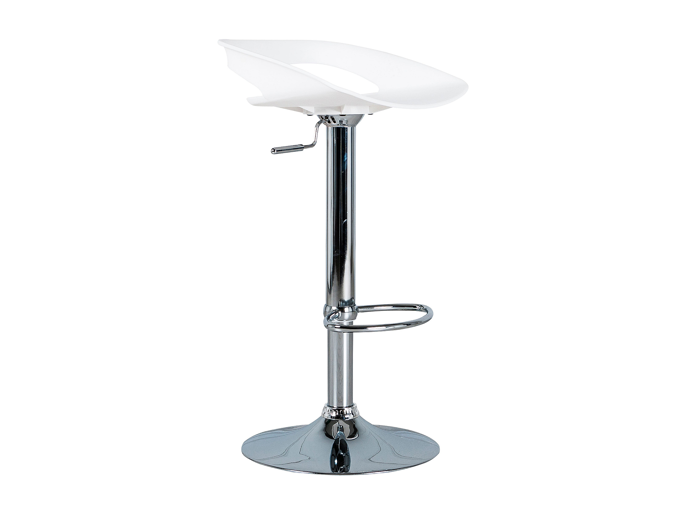 Lot de 2 tabourets hauts "Glenda" blancs en polypropylène avec vérin à gaz et repose-pieds, 40x40 cm, hauteur 69 cm.
