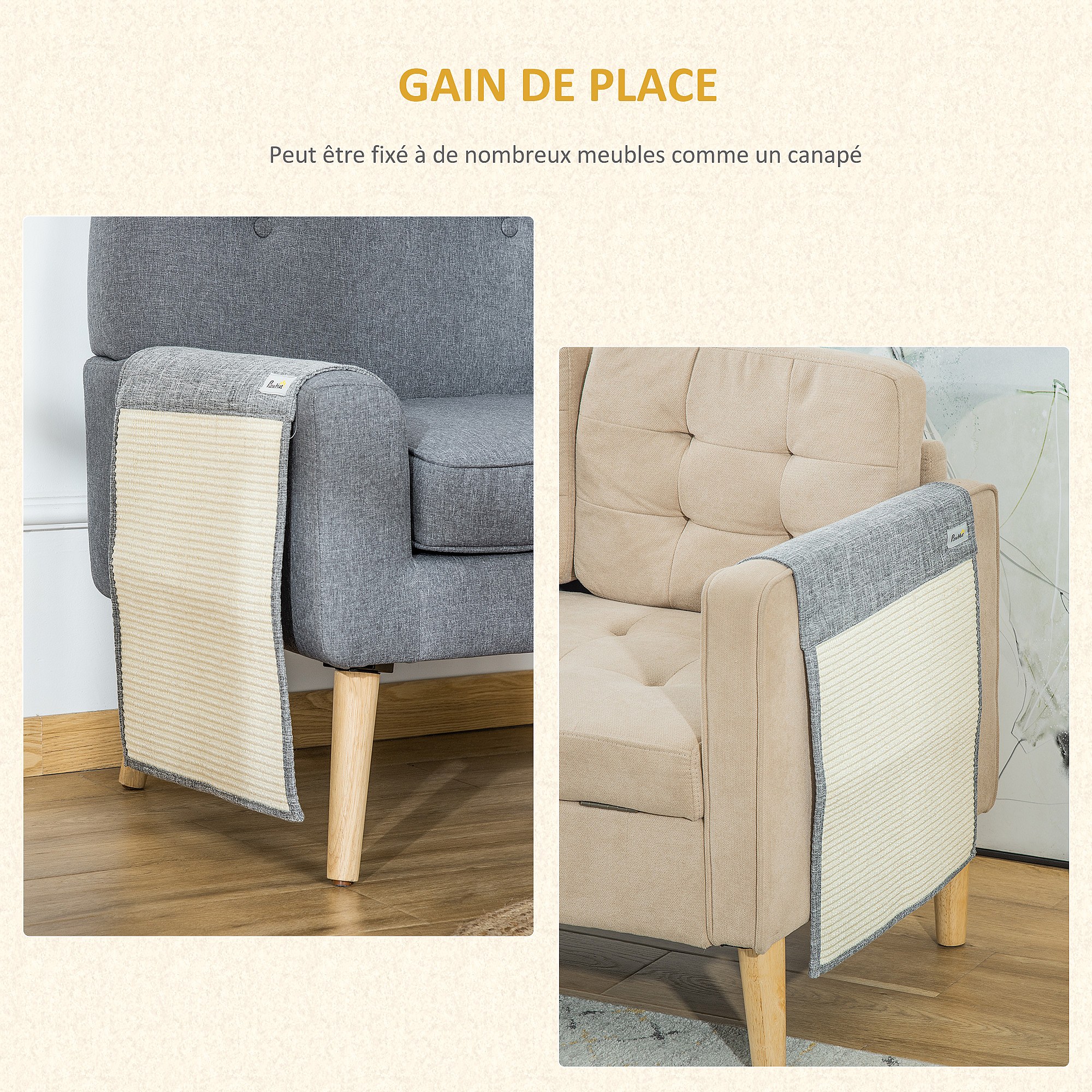 Lot de 2 tapis griffoir chat grattoir chat en sisal grattoir de canapé, sol ou mur dim. 130L x 45l cm gris