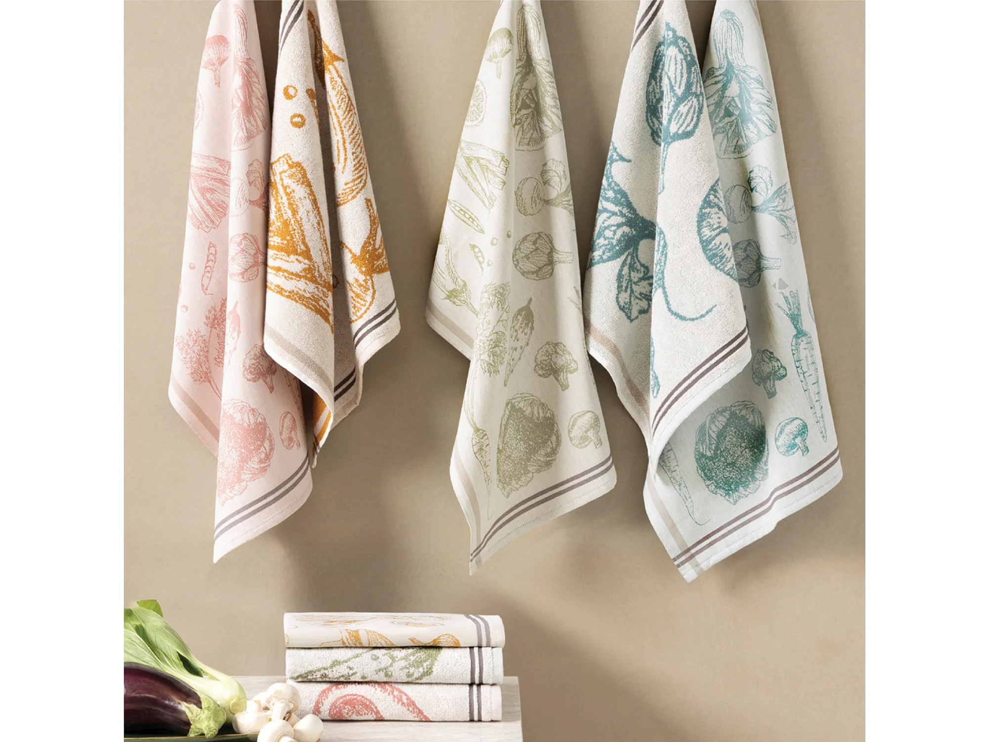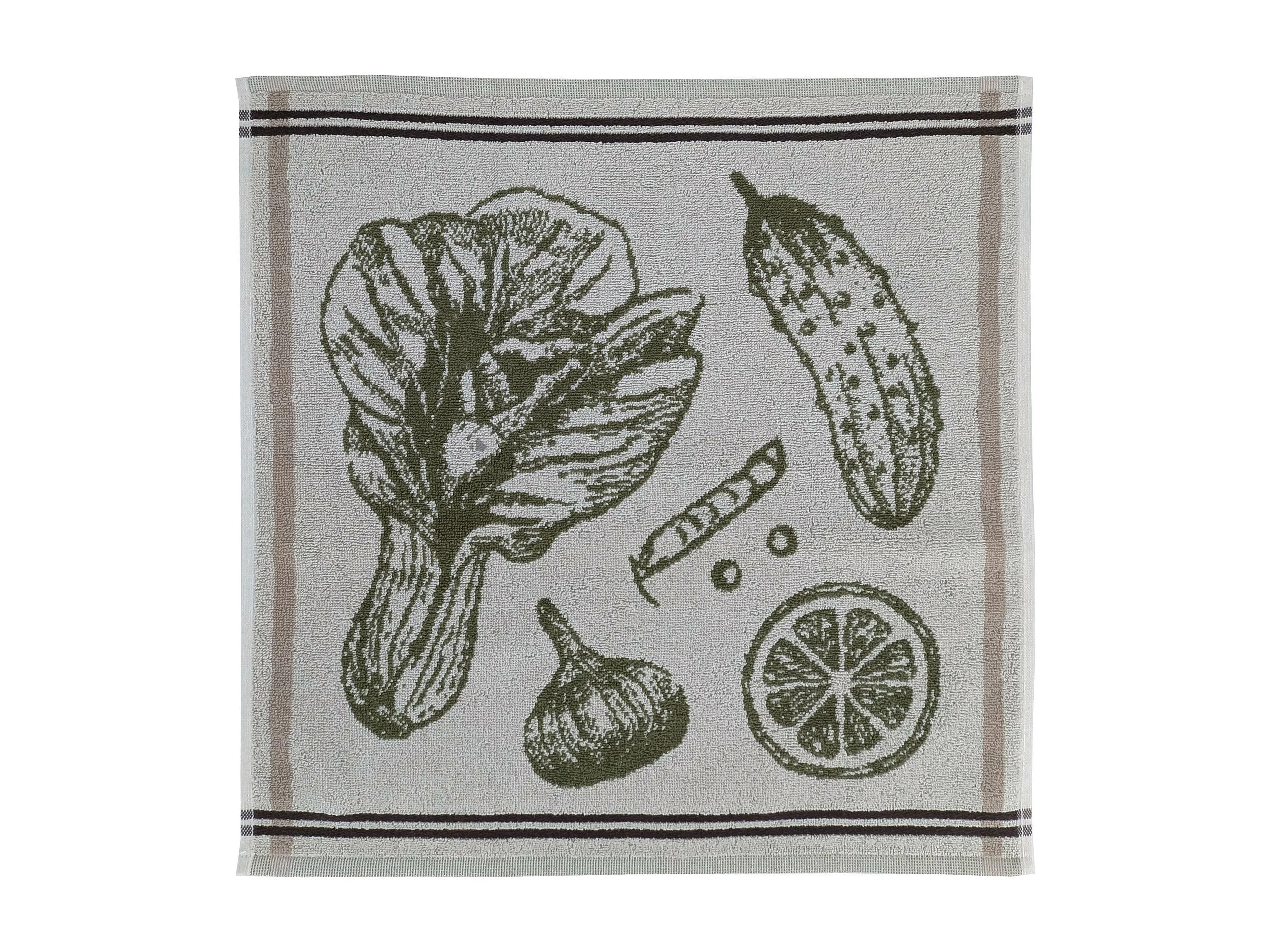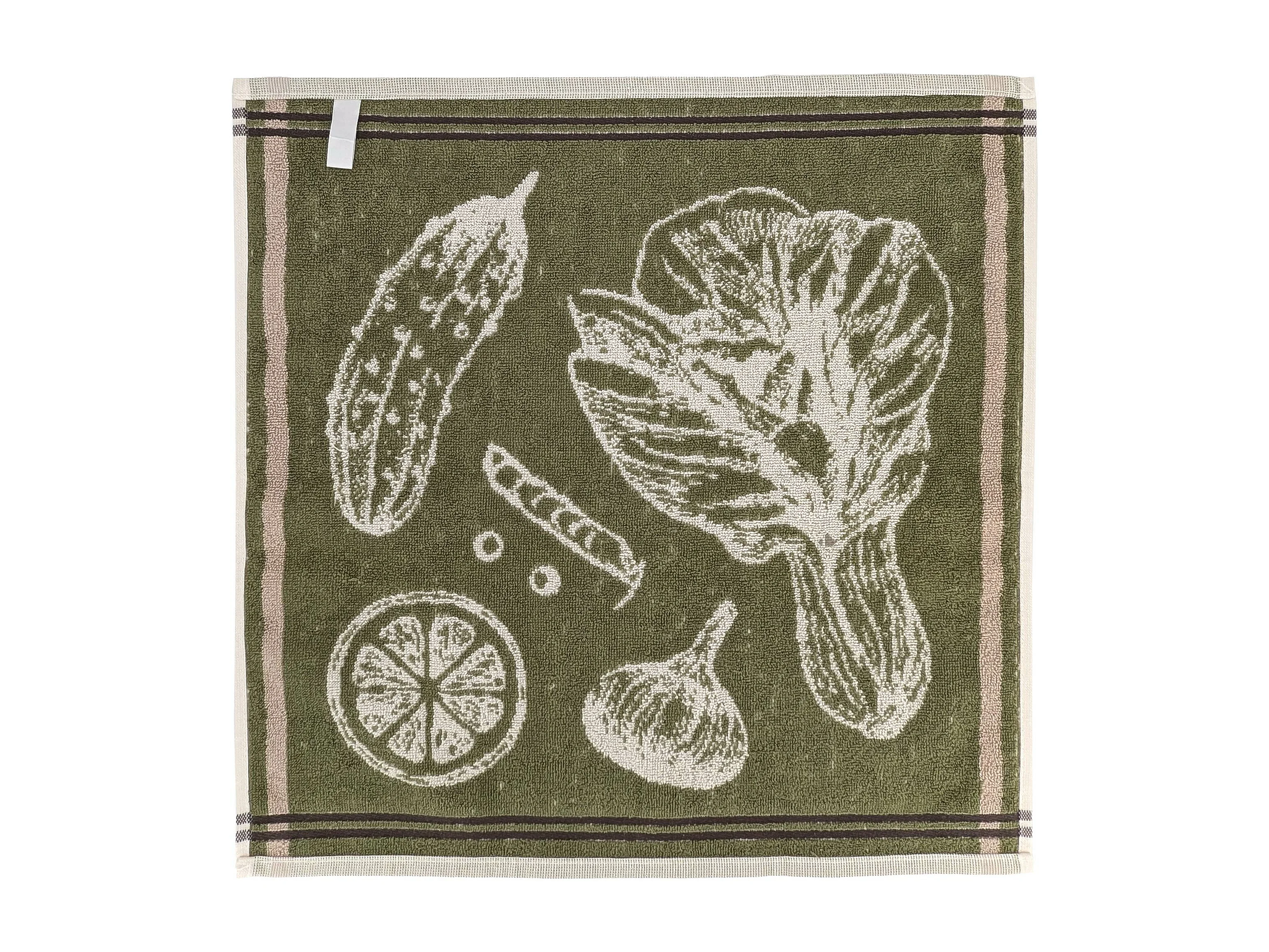 Lot de 2 torchons de cuisine éponge VEG 50x50 cm vert Olive