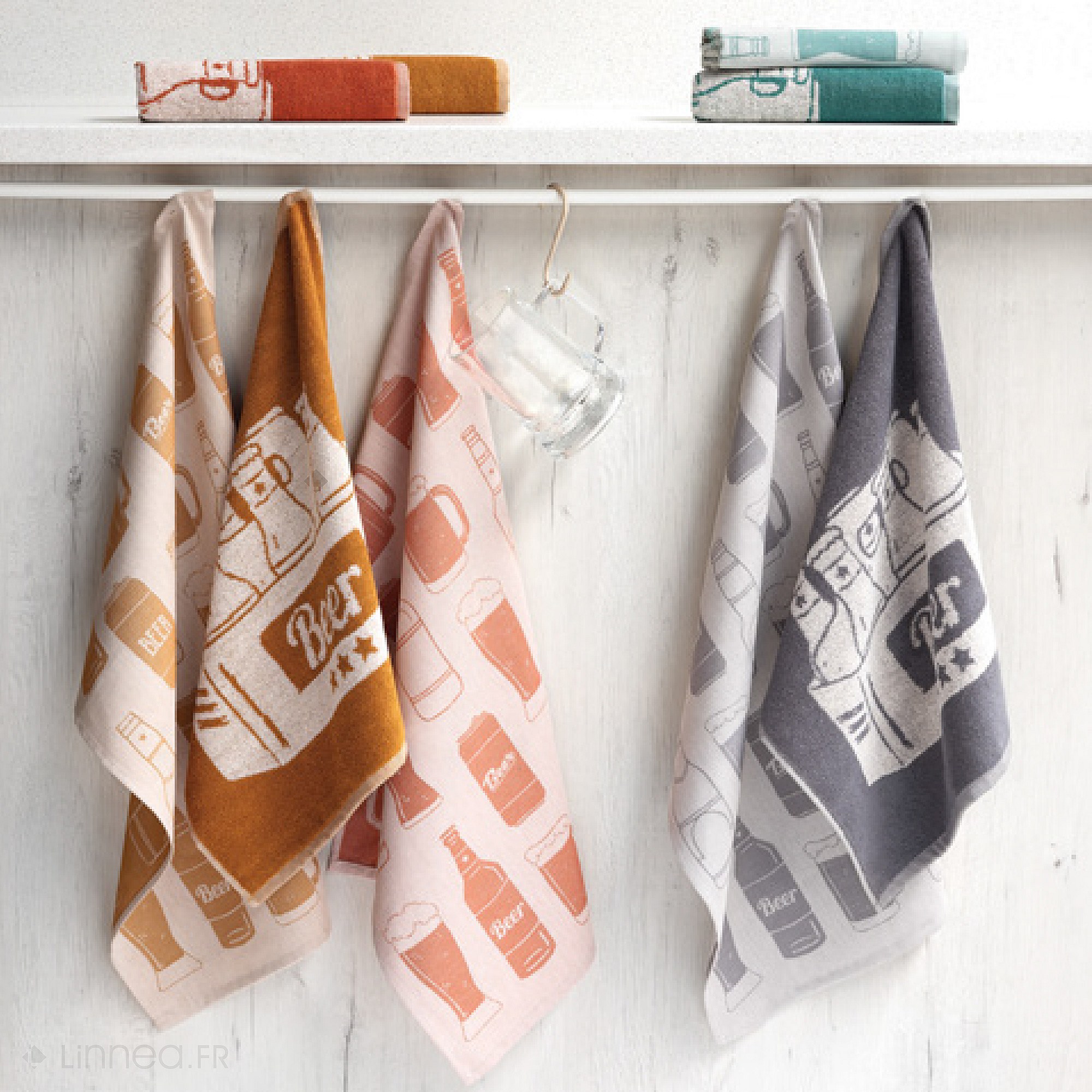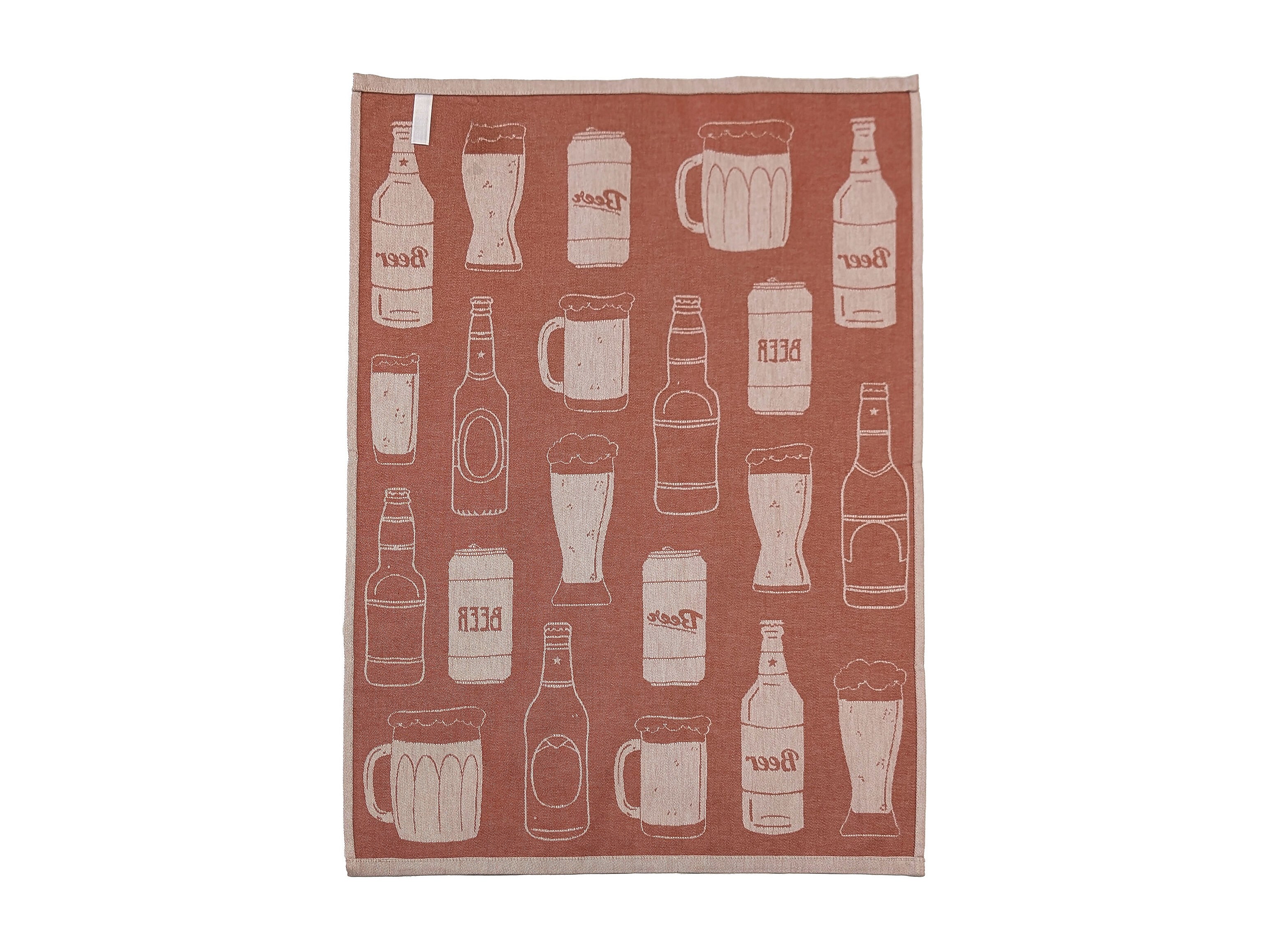 Lot de 2 torchons de cuisine pur coton 50x70 cm BEER rouge brique