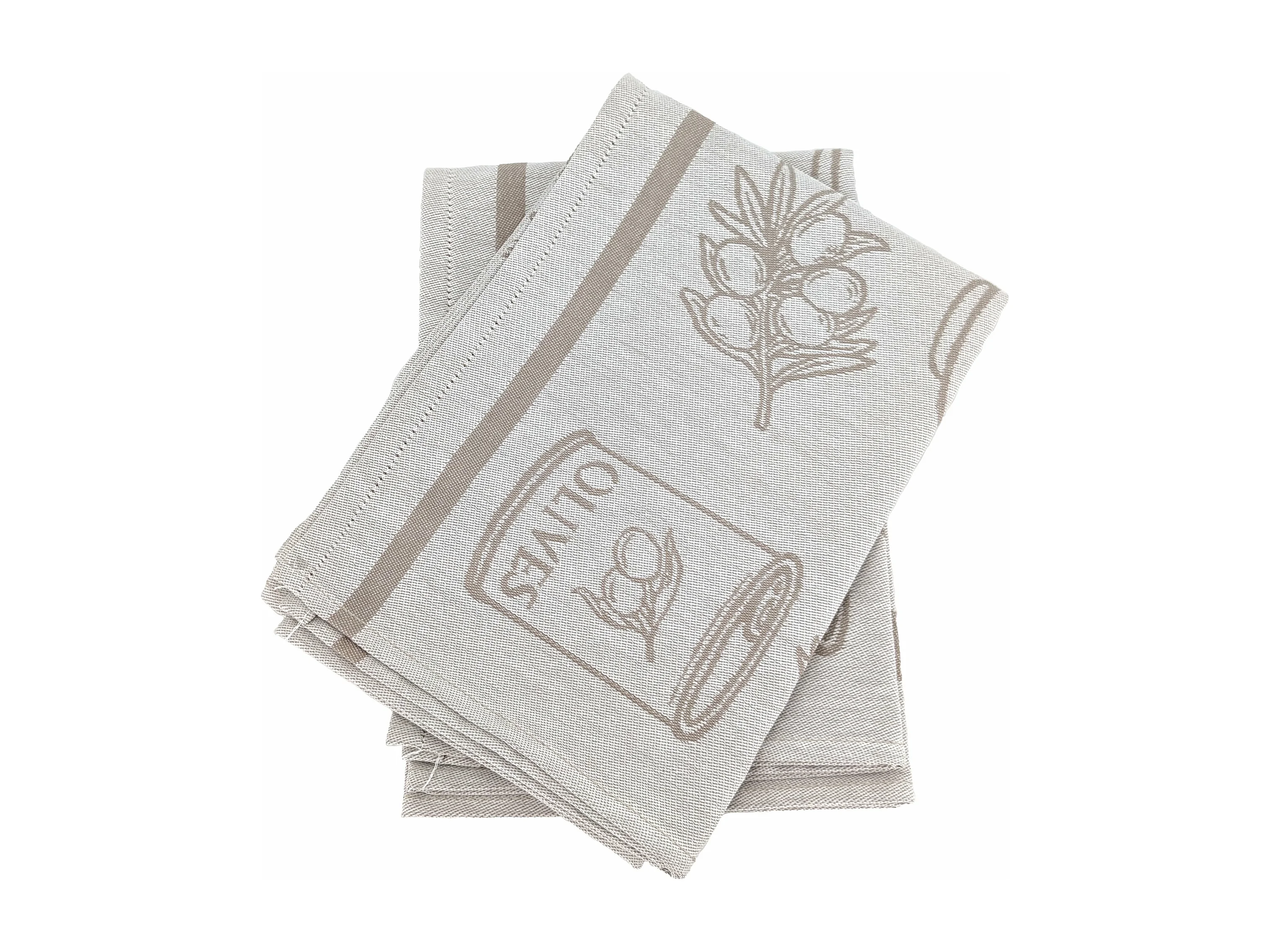 Lot de 2 torchons de cuisine pur coton 50x50 cm EVOO motif olives beige