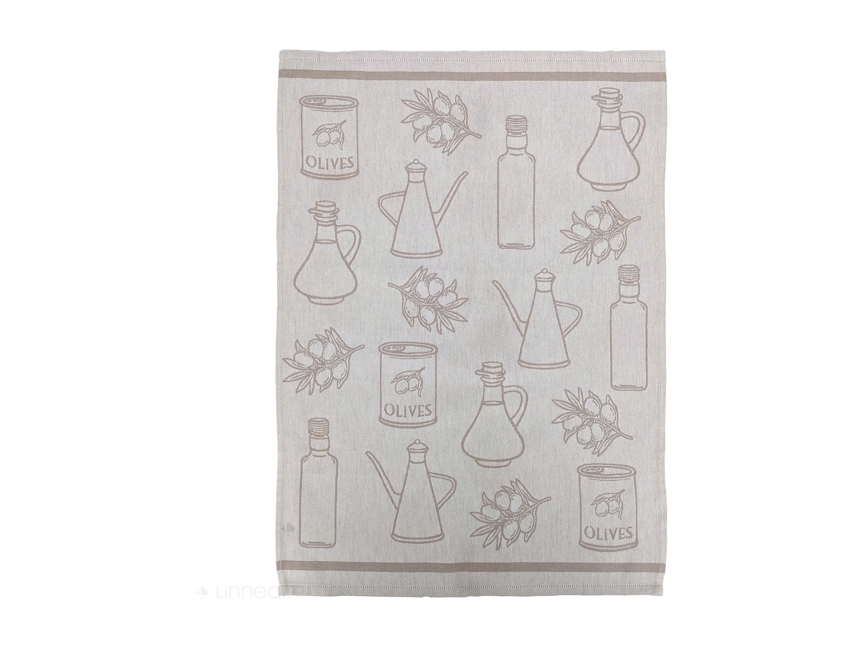 Lot de 2 torchons de cuisine pur coton 50x70 cm EVOO motif olives beige