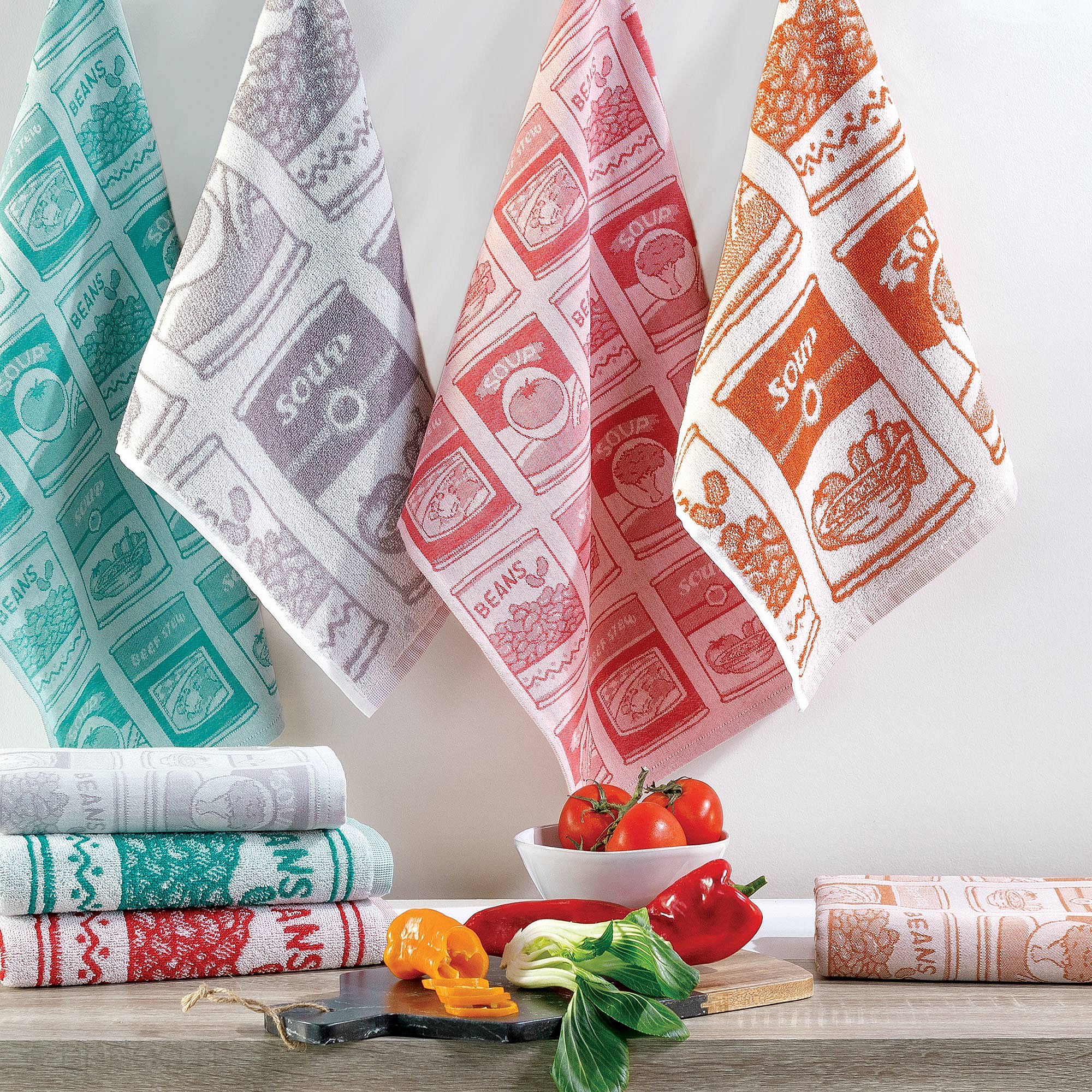 Lot de 2 torchons de cuisine toile 50x70 cm coton SOUP vert