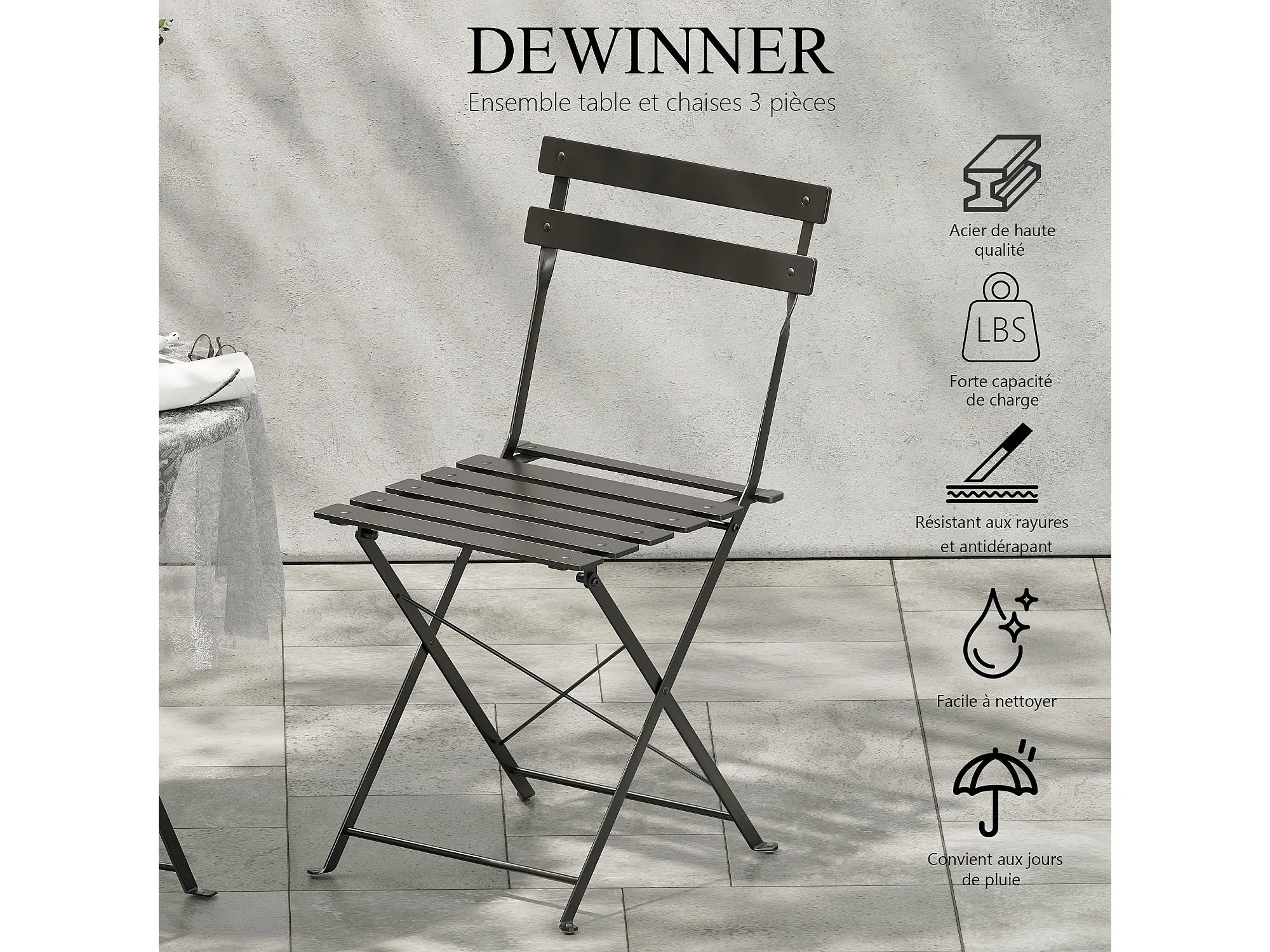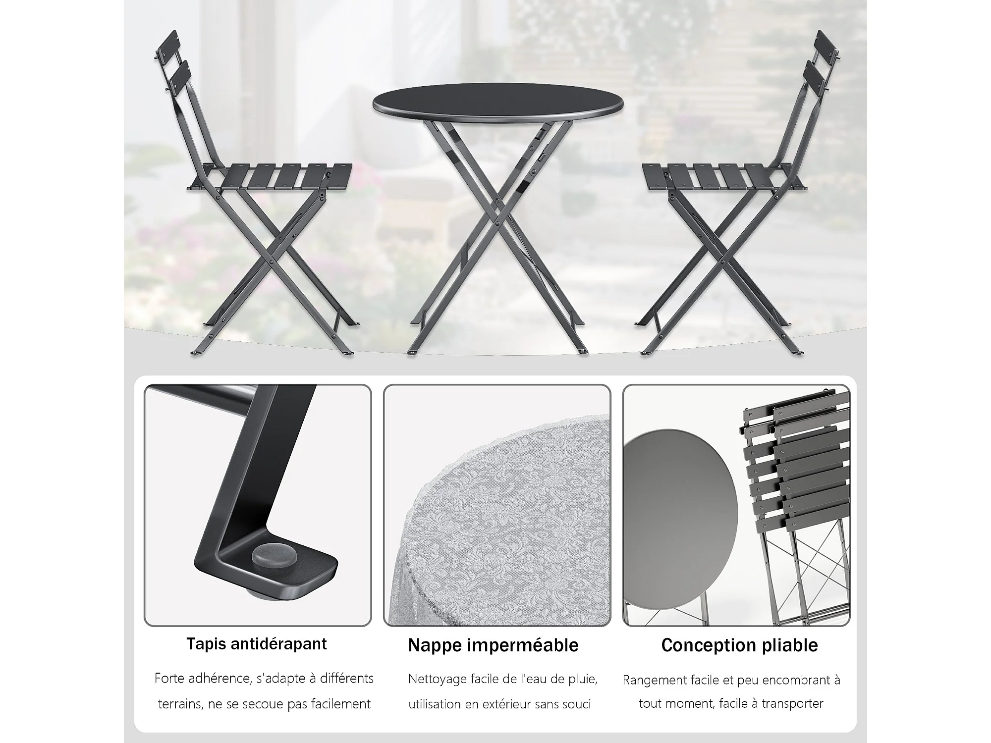 Lot de 3 Meubles de Jardin de Balcon, Bistrot Bar Salon de Jardin Exterieur 2 Personnes