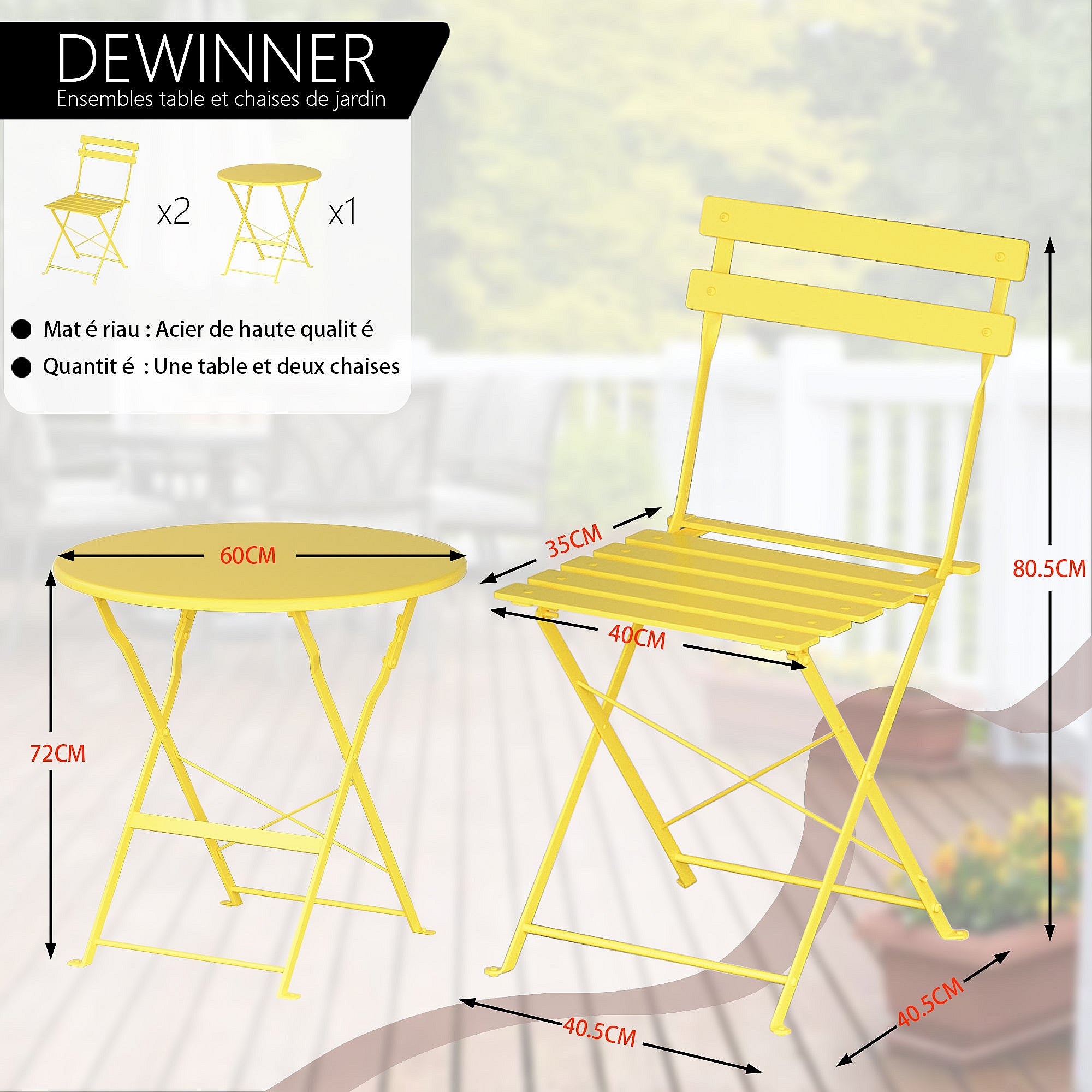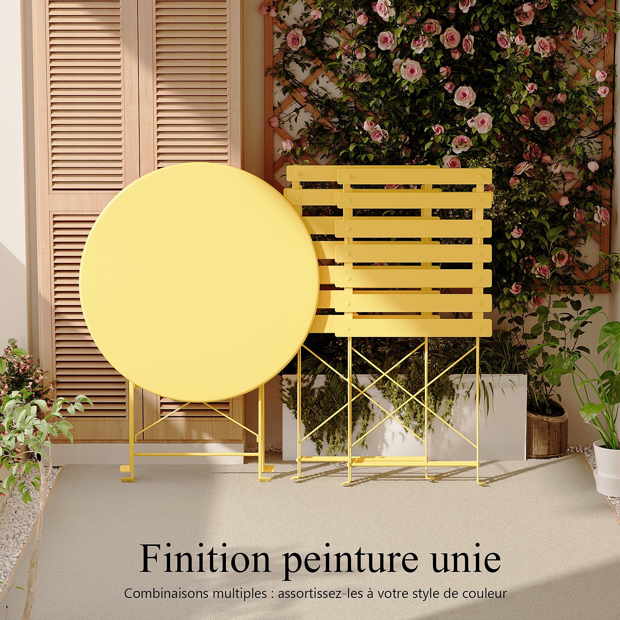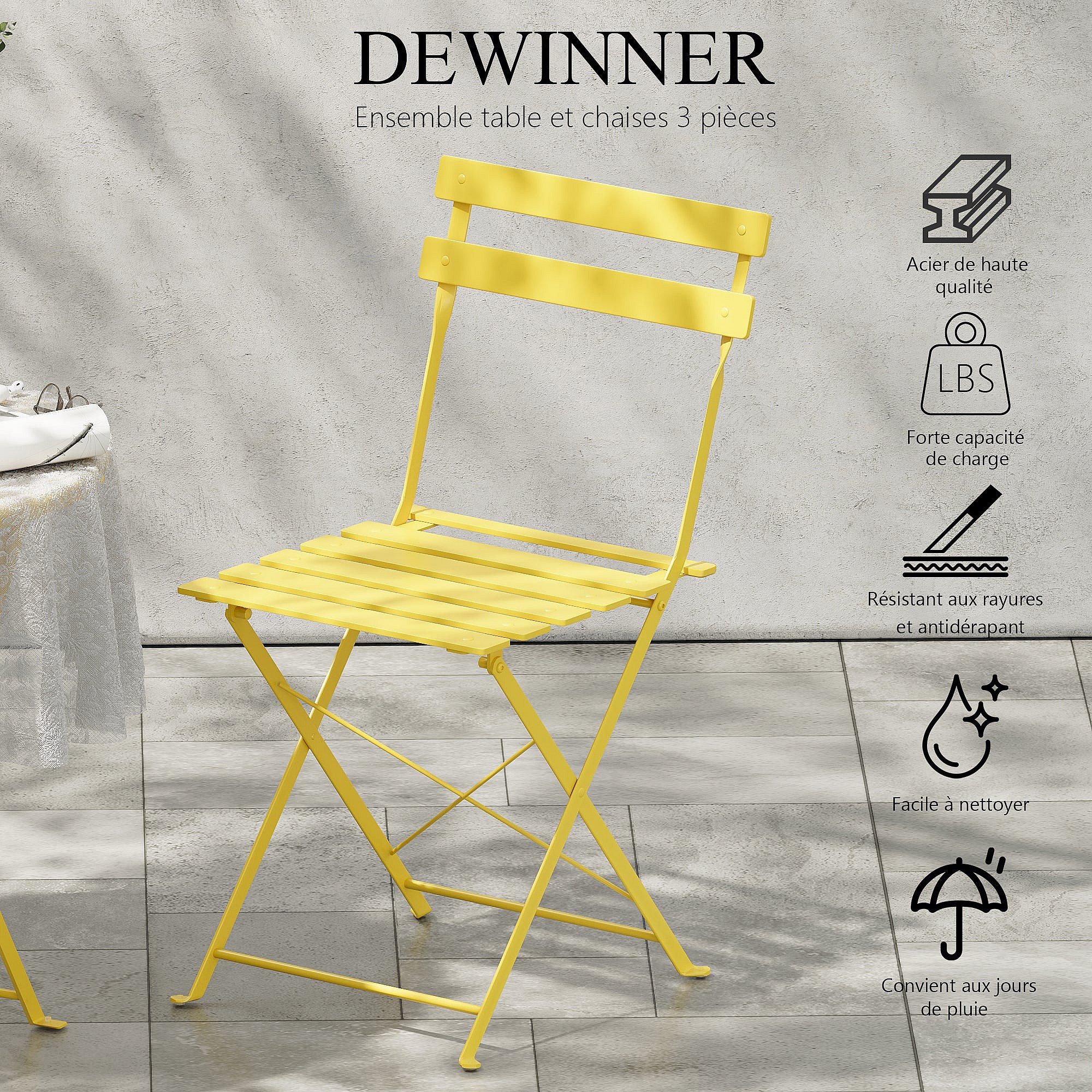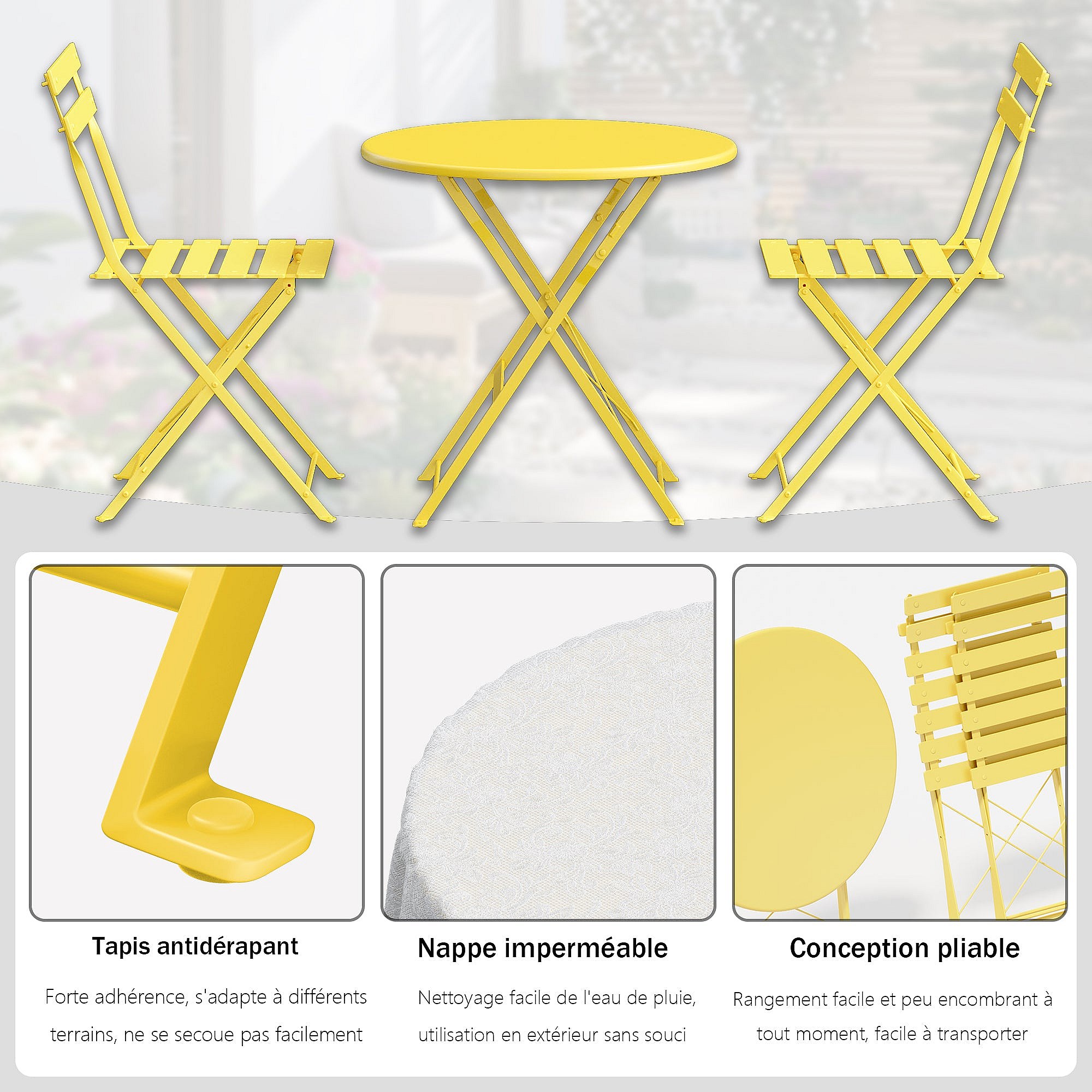 Service de bistrot avec table et 2 chaises en acier jaune ocre - YVONNE