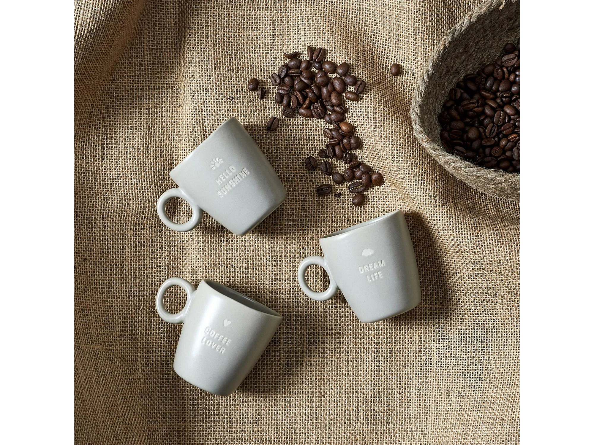 Lot de 3 mugs en grès avec message collection MINIMALIST beige