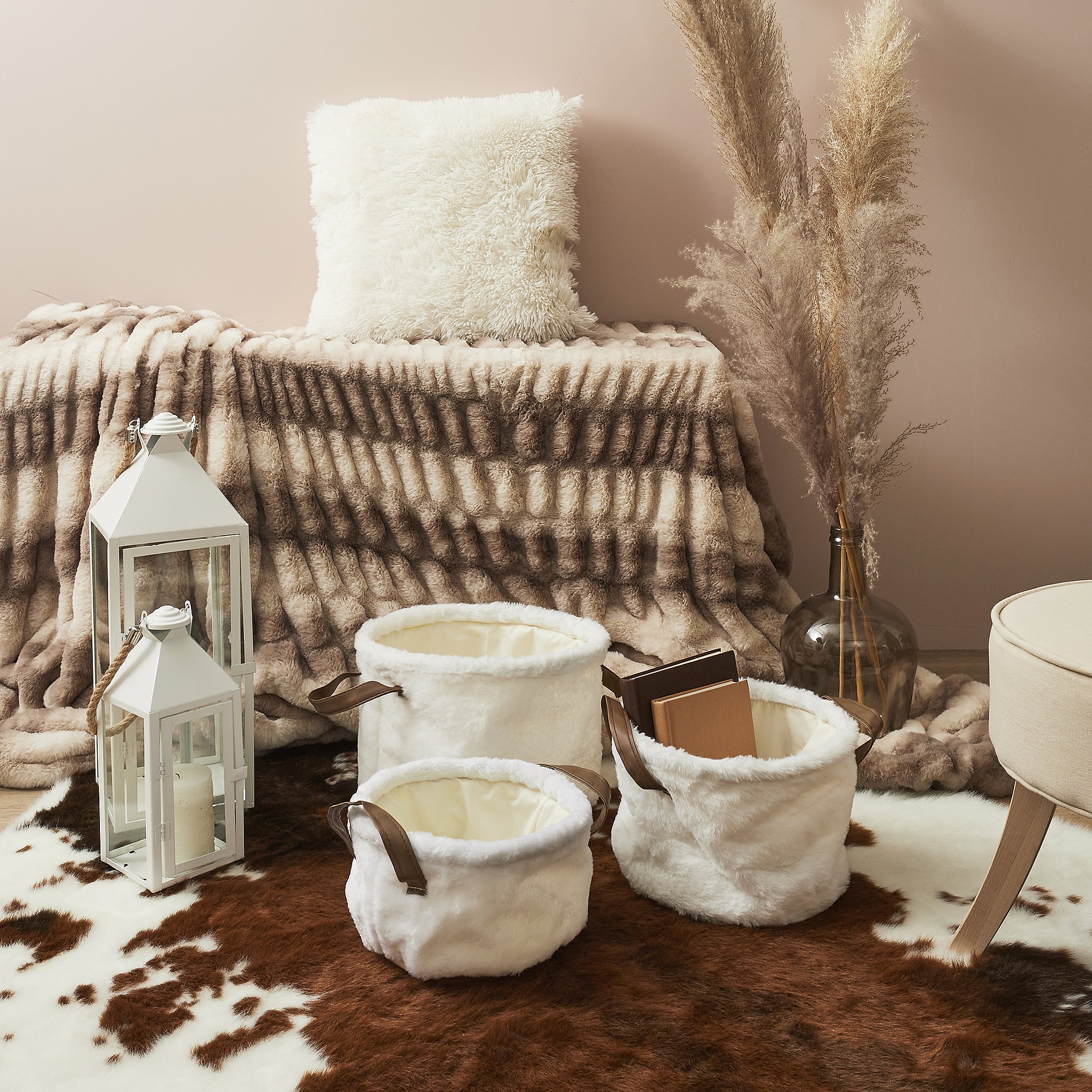 Lot de 3 Paniers Déco "Effet Fourrure" 28cm Blanc