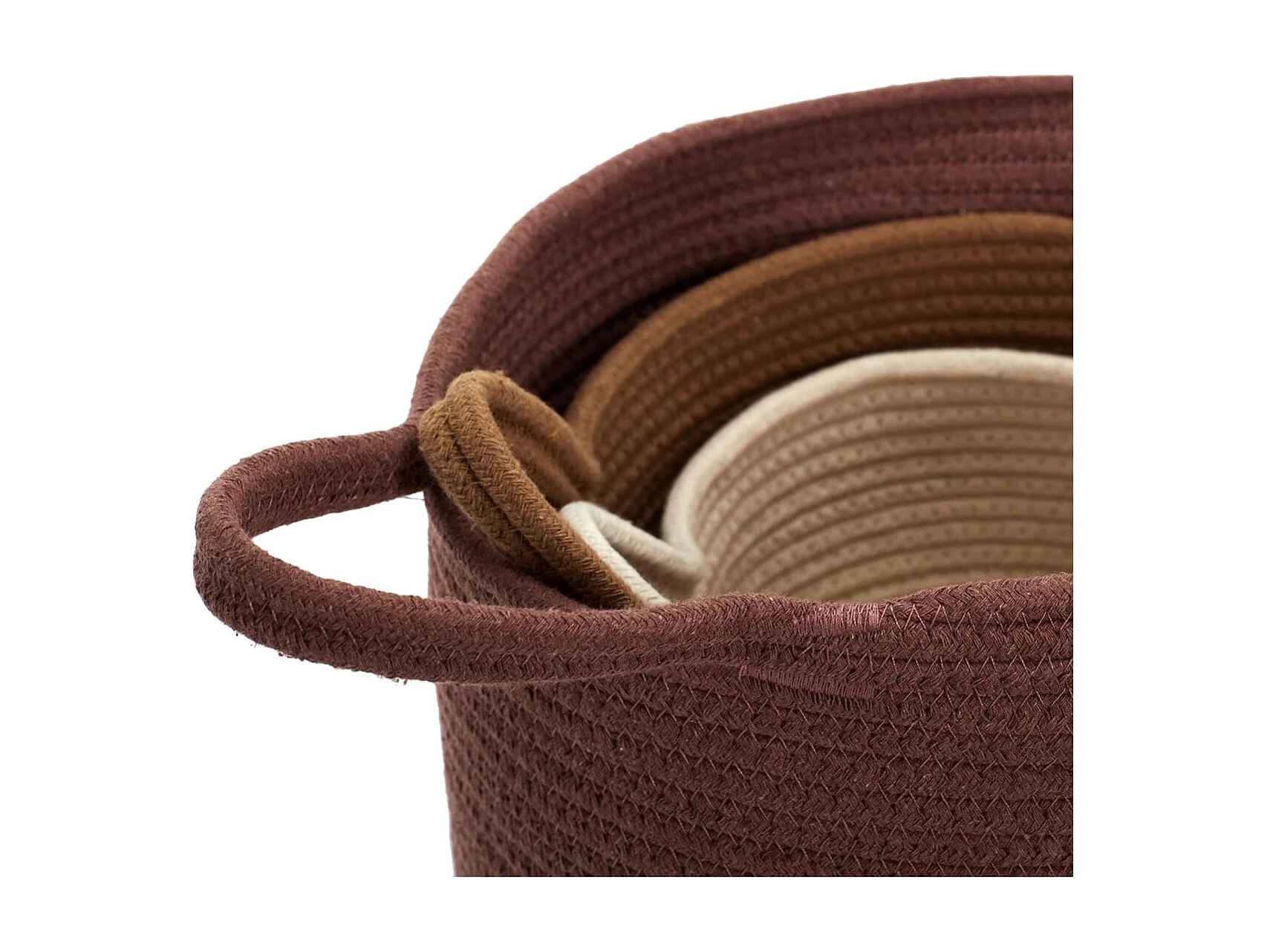 Lot de 3 Paniers Tressés Terracotta Marron et Blanc Crème - BRENDA