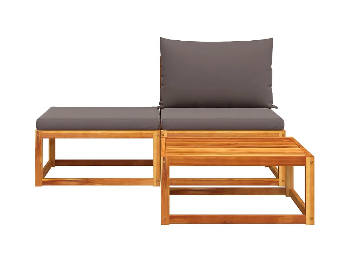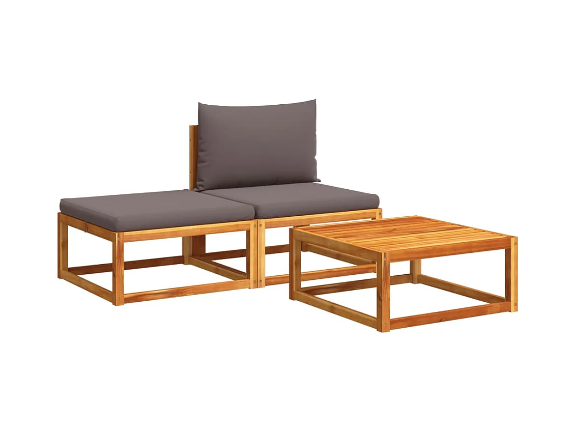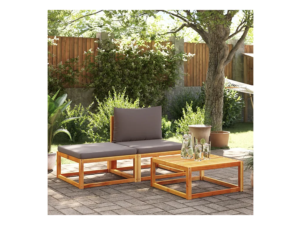 Lot de 3 Salon de jardin avec coussins bois massif d'acacia FR446817 FR994206