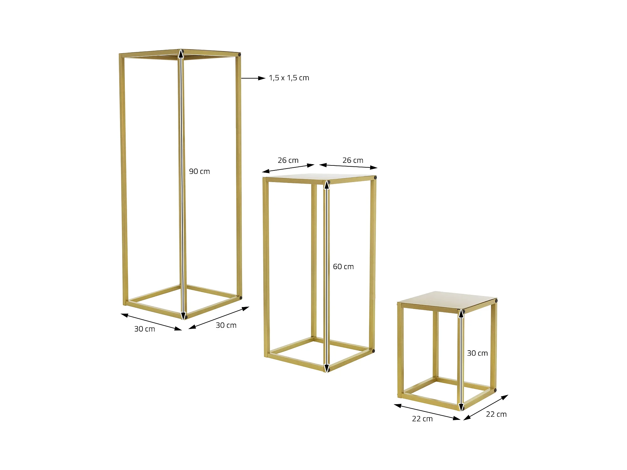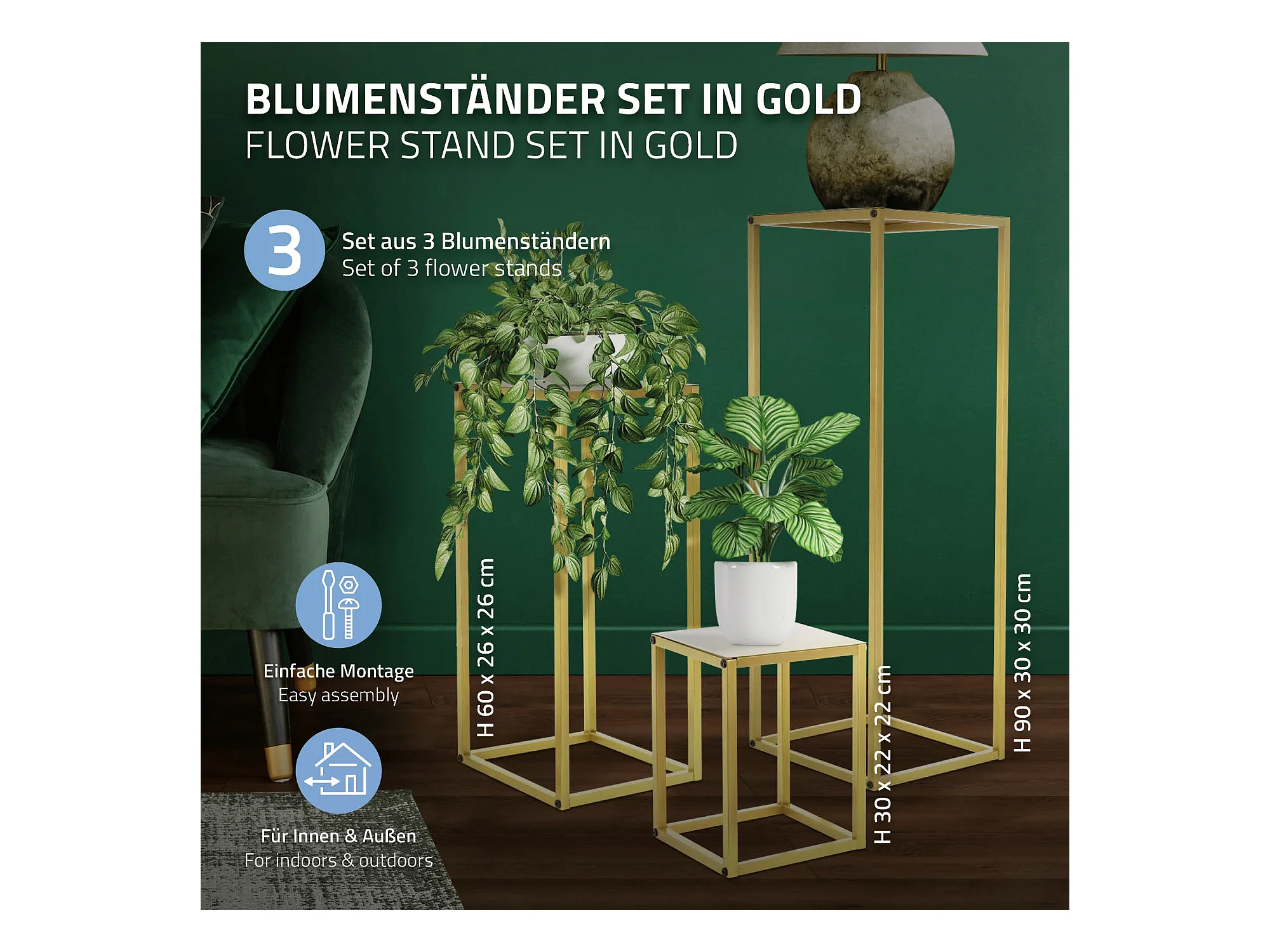 Lot de 3 support de fleurs moderne pot à plantes en métal doré tabouret à fleurs