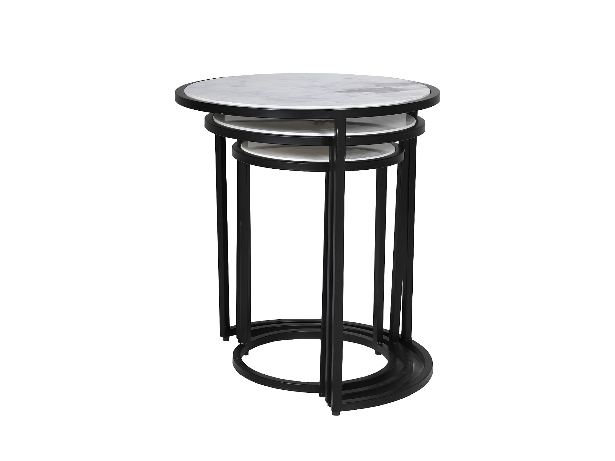 Lot de 3 tables basses Marbre PAROS / Piètement noir