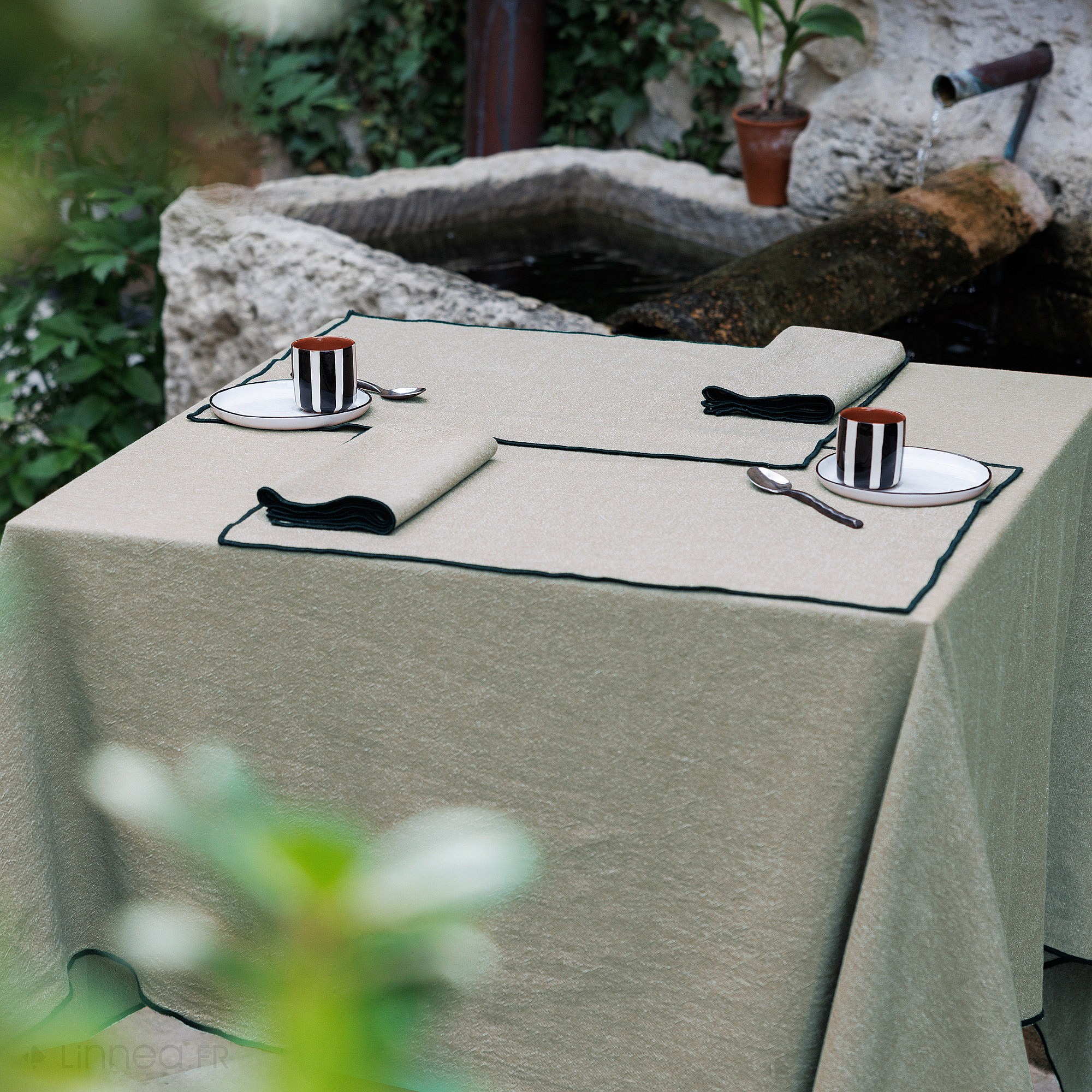Lot de 4 galettes piquées, ronde 38cm, vert argile, avec nouettes, 100% coton, collection Panama