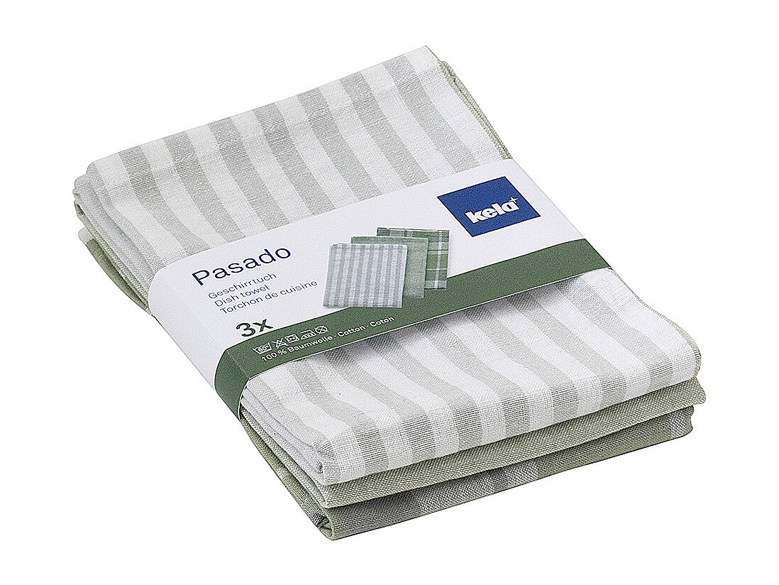Lot de 3 torchons de cuisine Pasado vert olive