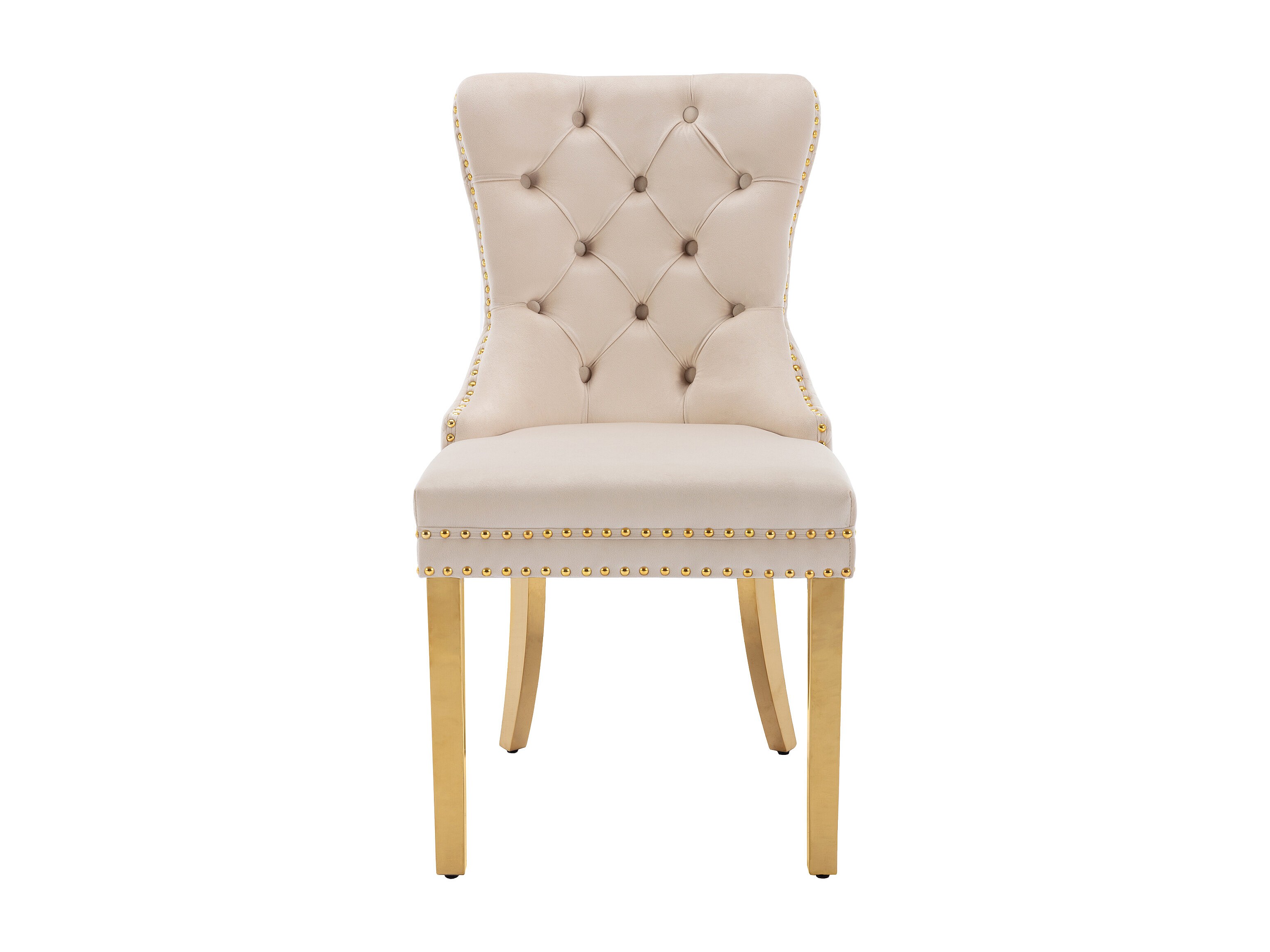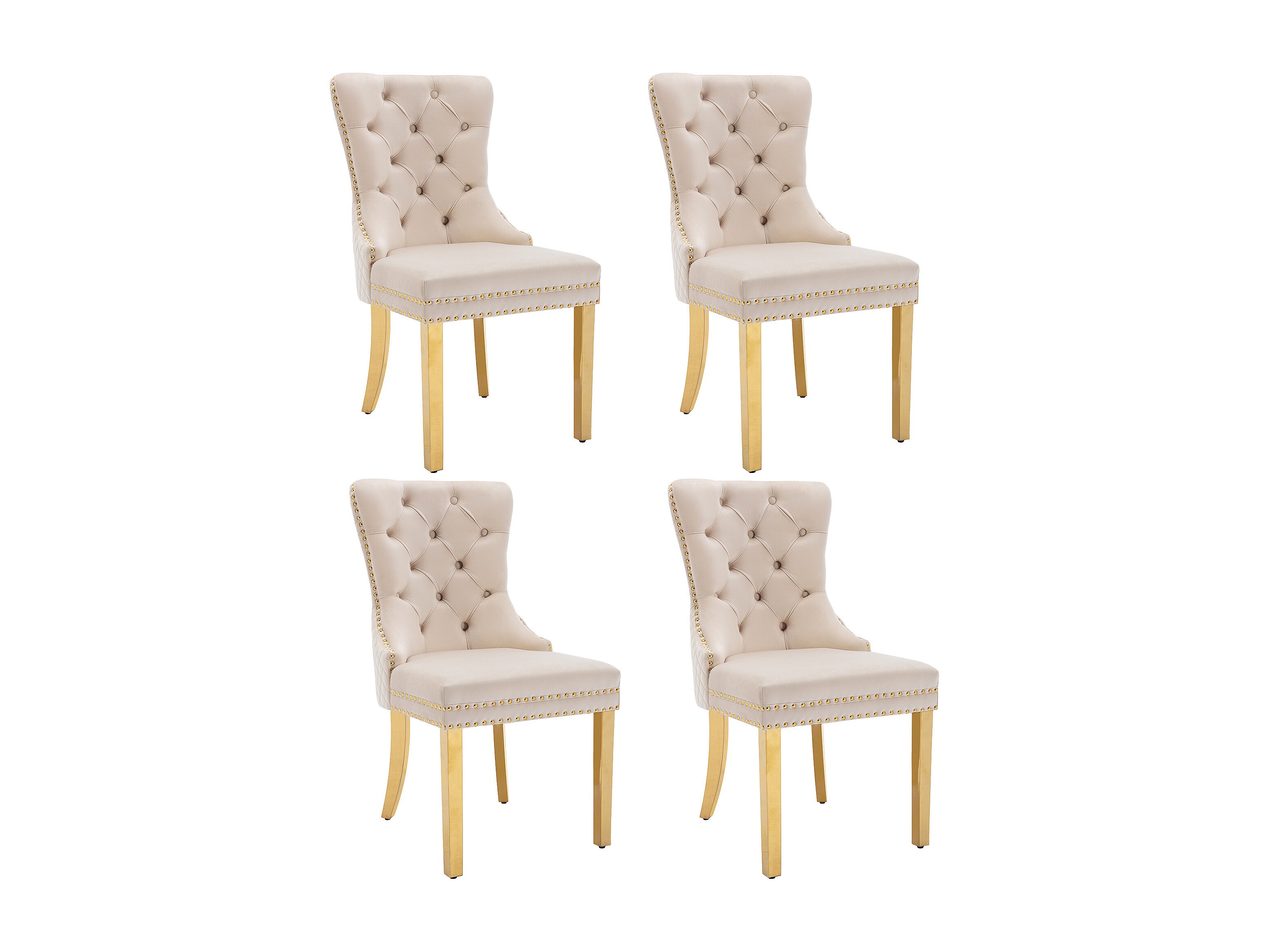 Lot de 4 chaises à manger avec dossier rembourré - pieds en métal doré - velours - beige