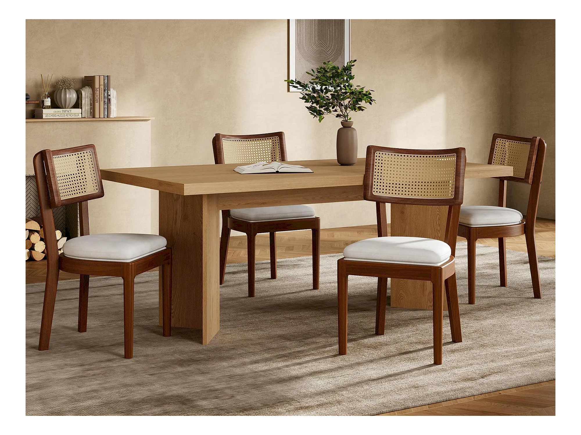 Lot de 4 chaises de salle à manger - Dossier en rotin - Assise en velours - Bois massif - Marron