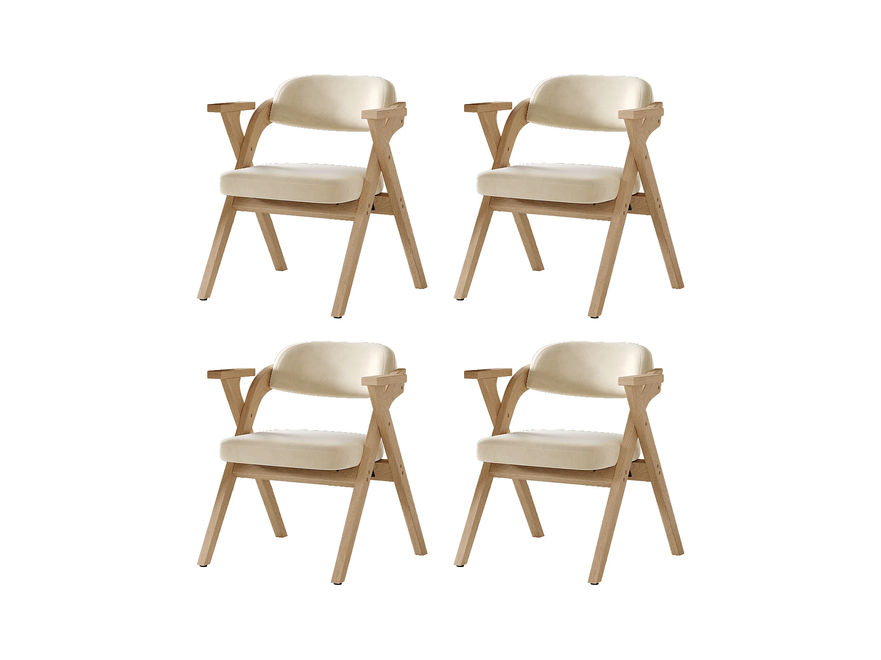 Lot de 4 chaises de salle à manger pliantes - pliables et rangeables - coussin en velours - 64.5 x 66.5 x 73 cm - bois - beige