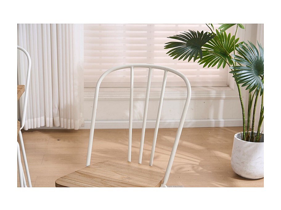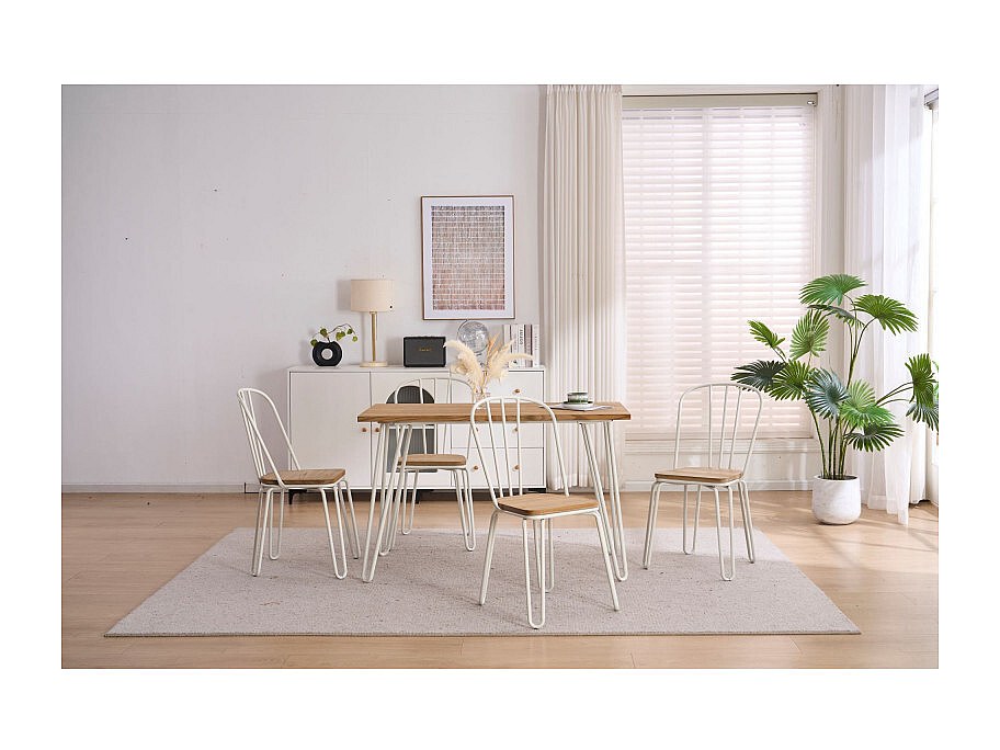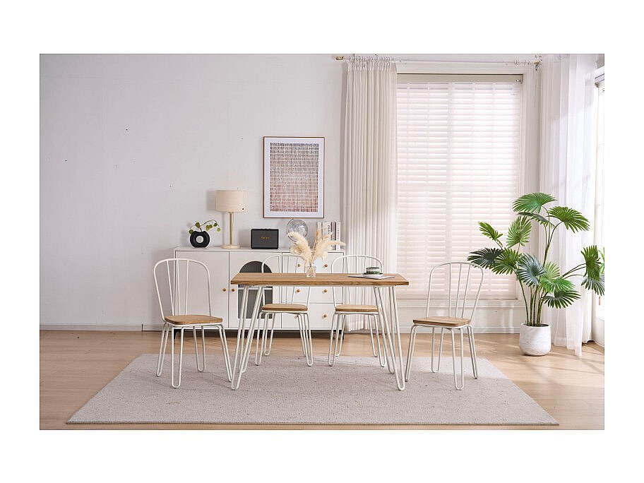 Lot de 4 chaises en métal blanc mat style industriel et assise en bois clair – Pieds en épingle