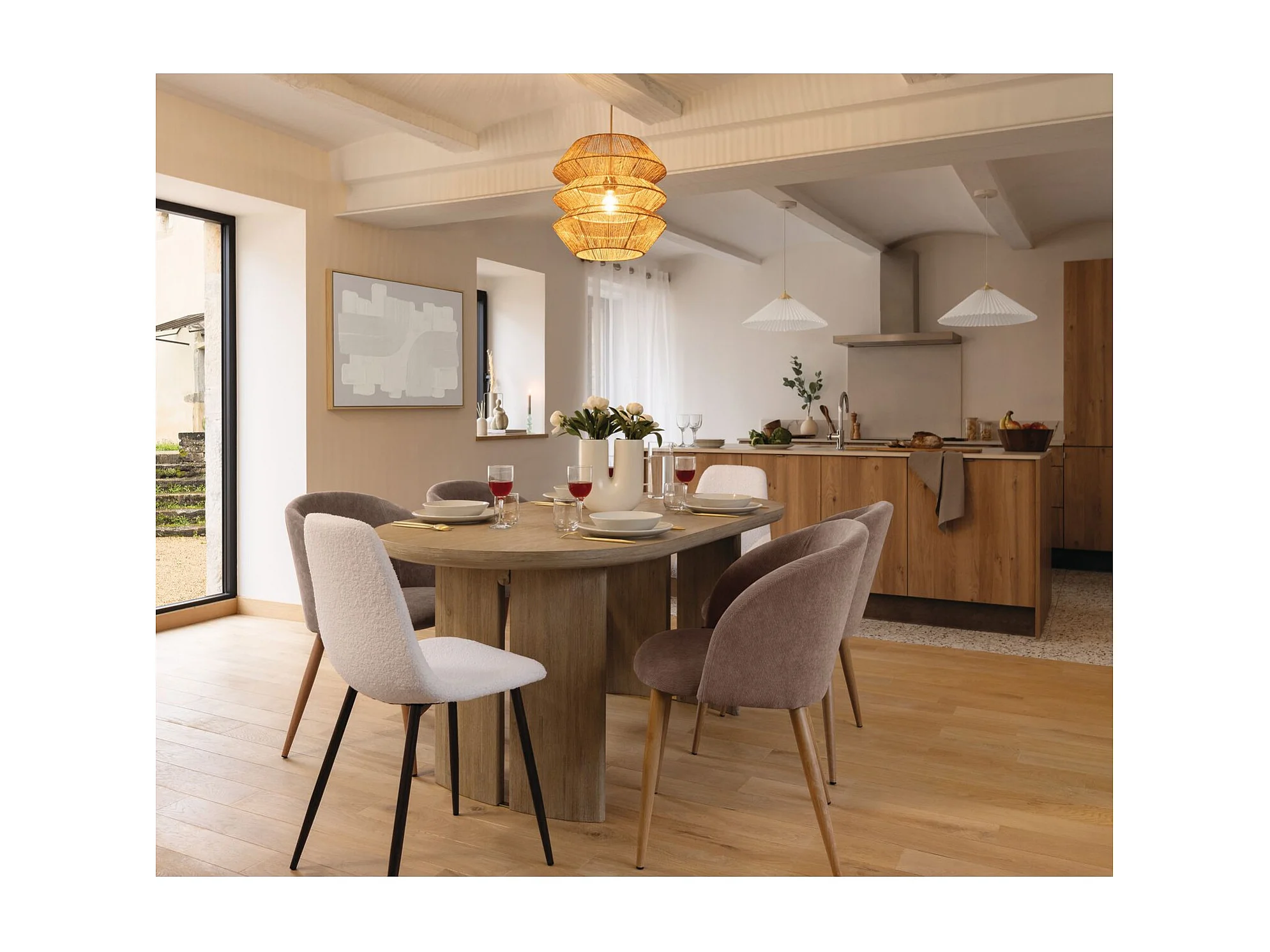 Lot de 4 chaises en velours côtelé et pieds effet hêtre CELESTE