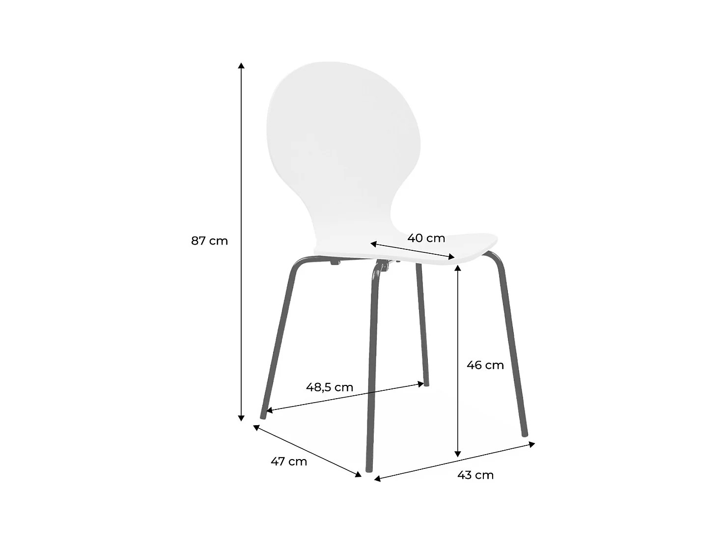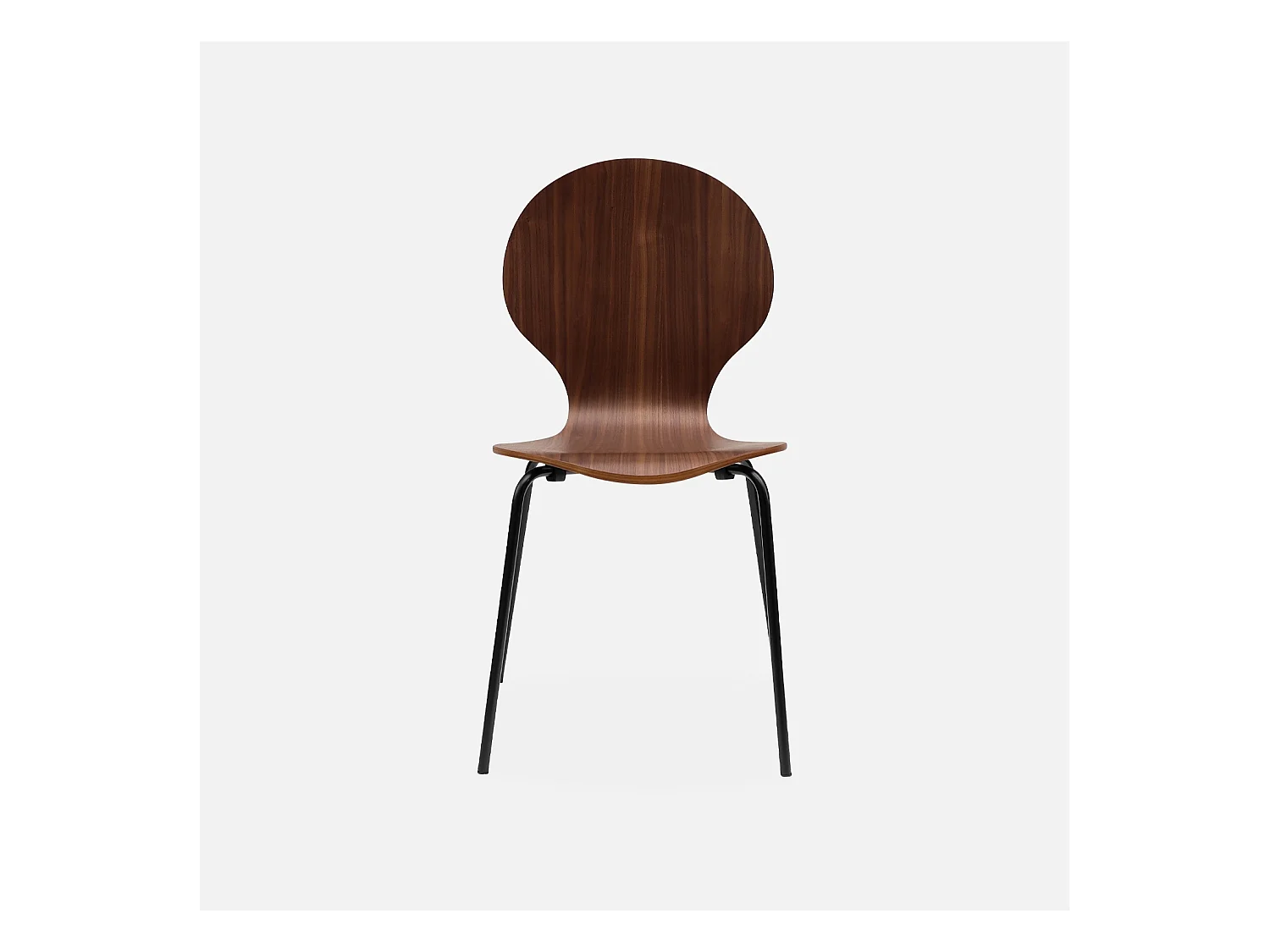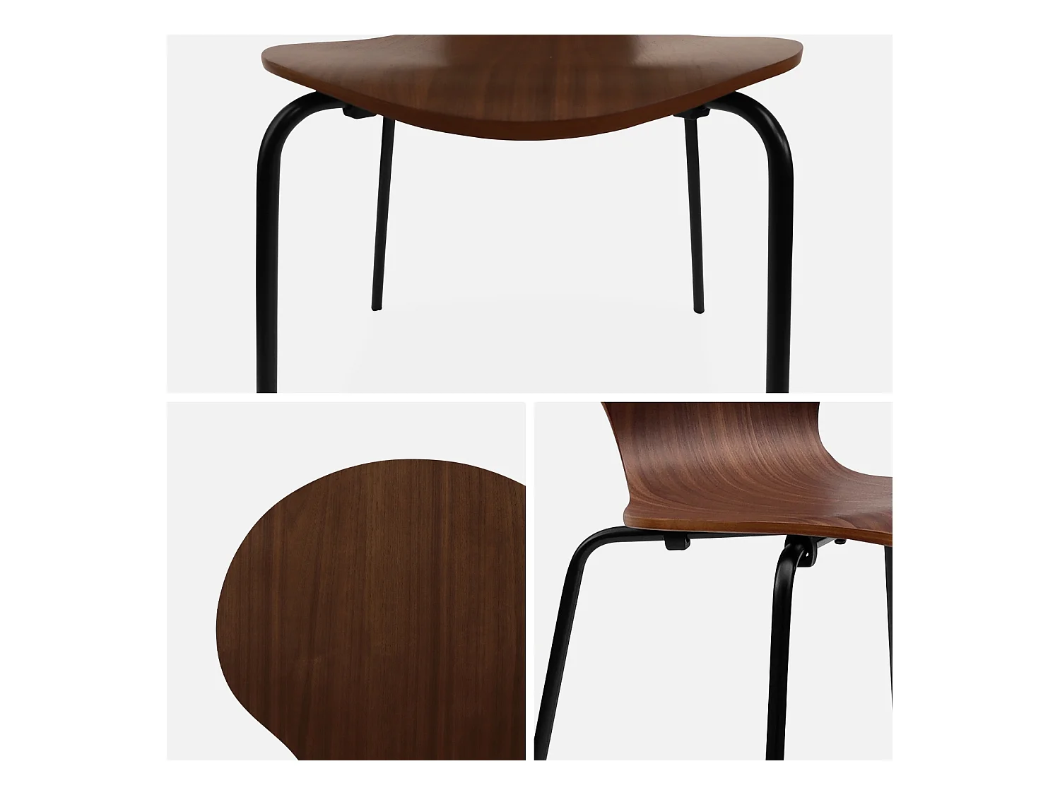 Lot de 4 chaises noyer. rétro empilables. bois d'hévéa et contreplaqué. pieds en acier. Naomi. L 43 x P 48 x H 87cm