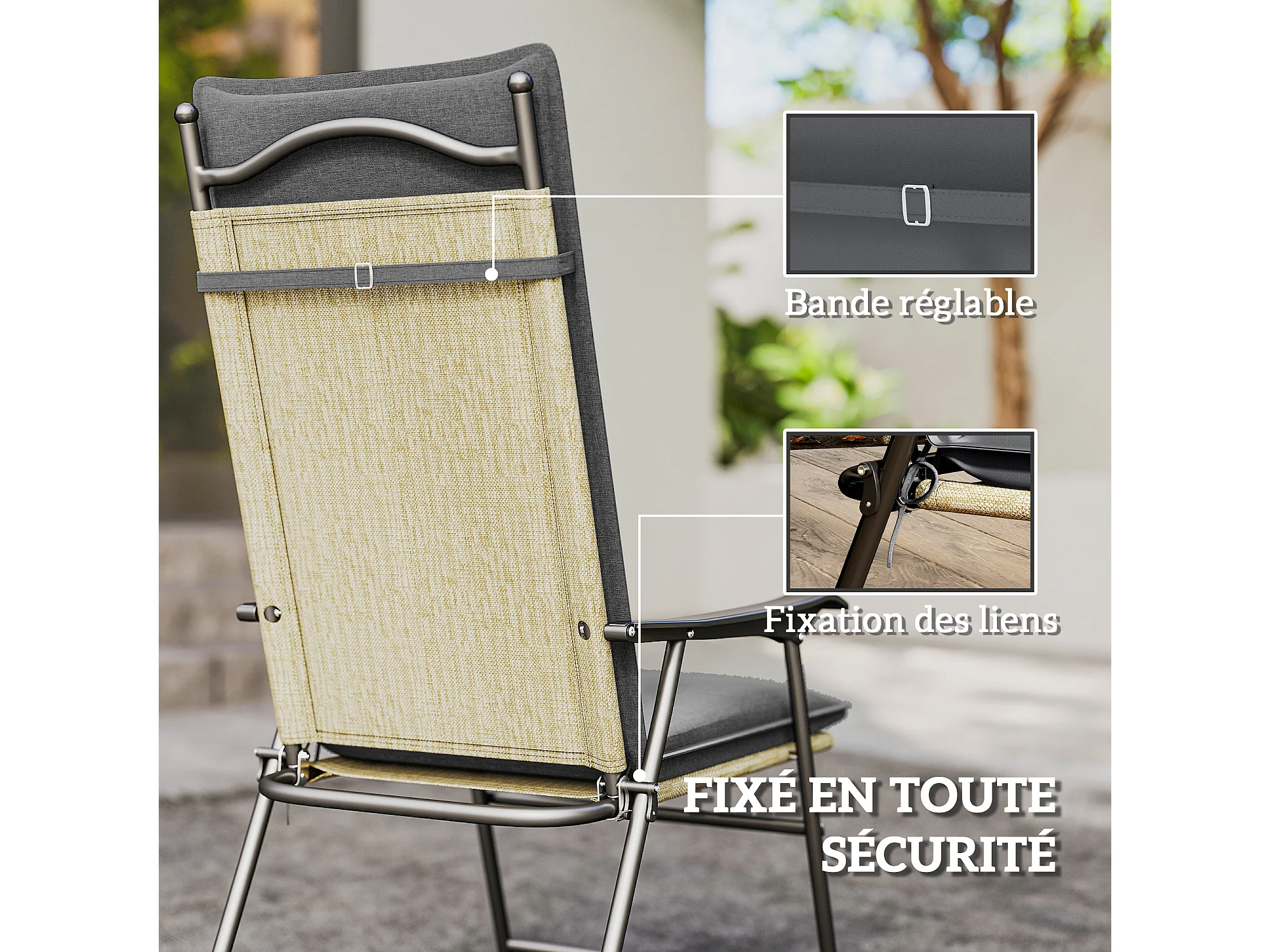 Lot de 4 coussins galettes assise dossier de chaises fauteuils de jardin polyester gris