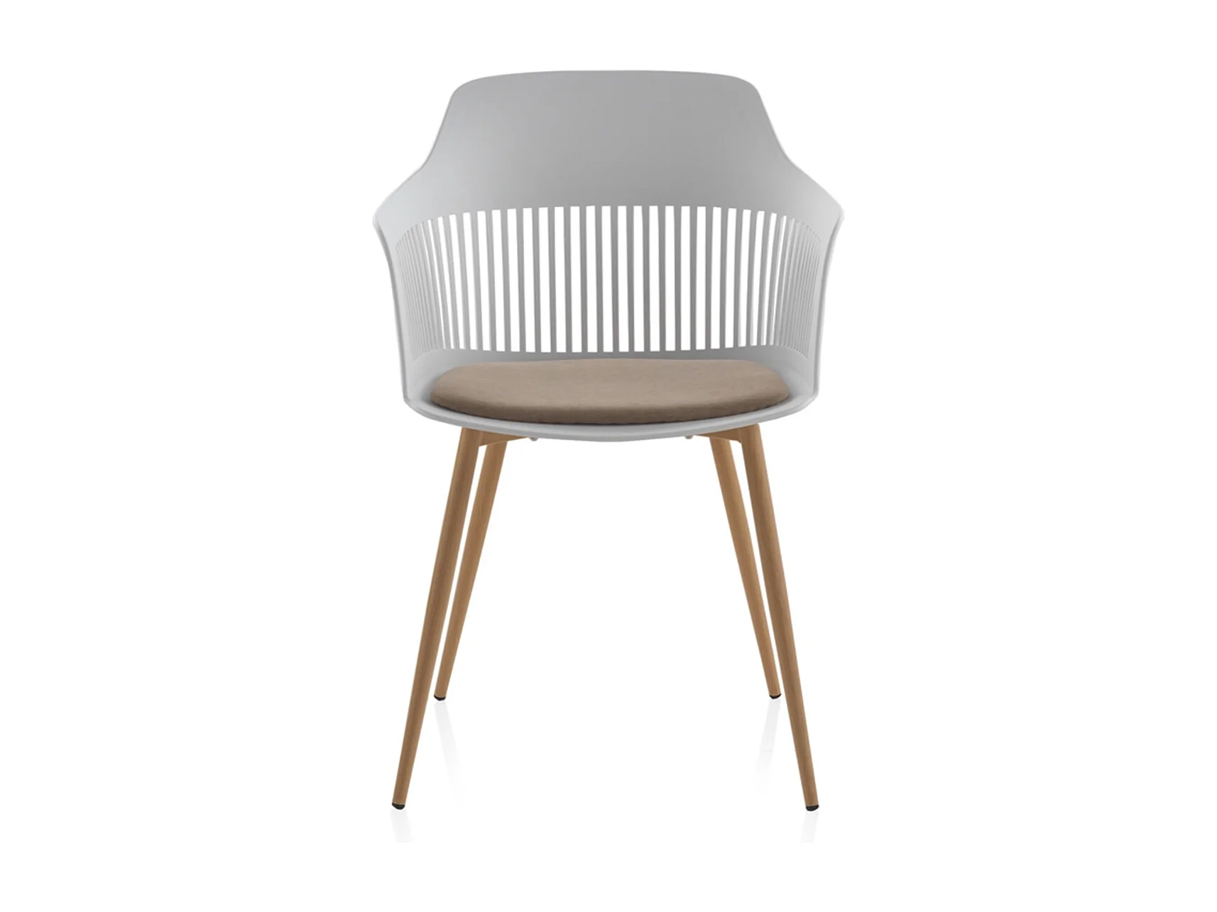Lot de 4 fauteuils en polypropylène blanc avec assise rembourrée et pieds métalliques