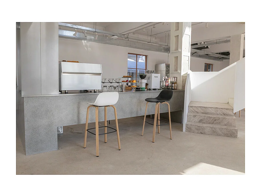 Lot de 4 tabourets de bar blancs style scandinave avec pieds effet bois en métal - Hauteur 66cm