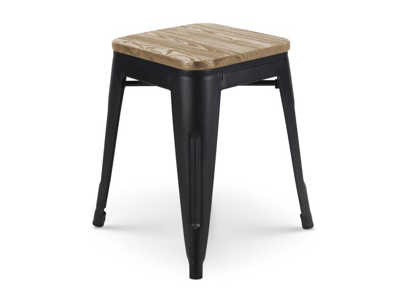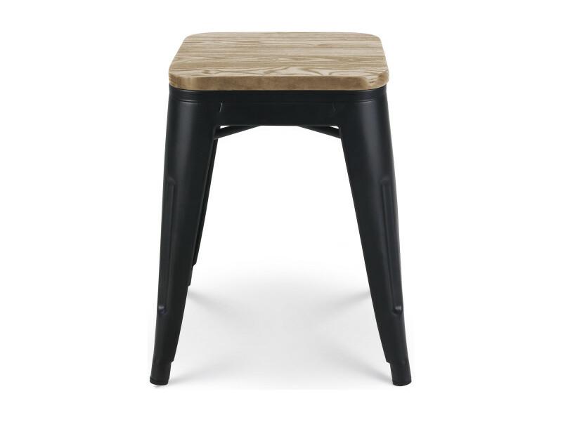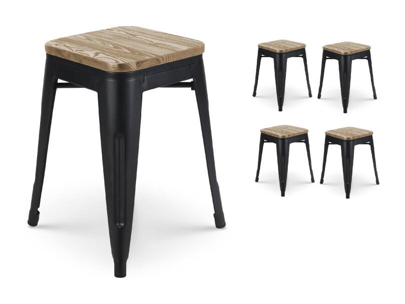 Lot de 4 tabourets en métal noir mat style industriel et assise en bois clair - Hauteur 46 cm