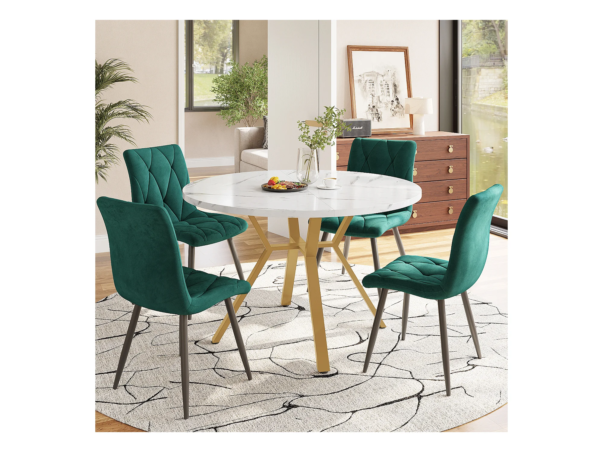 Lot de 5 table à manger et chaises - 100 x 100 x 75 cm - table ronde + 4 chaises en velours - MDF + Acier - vert + blanc
