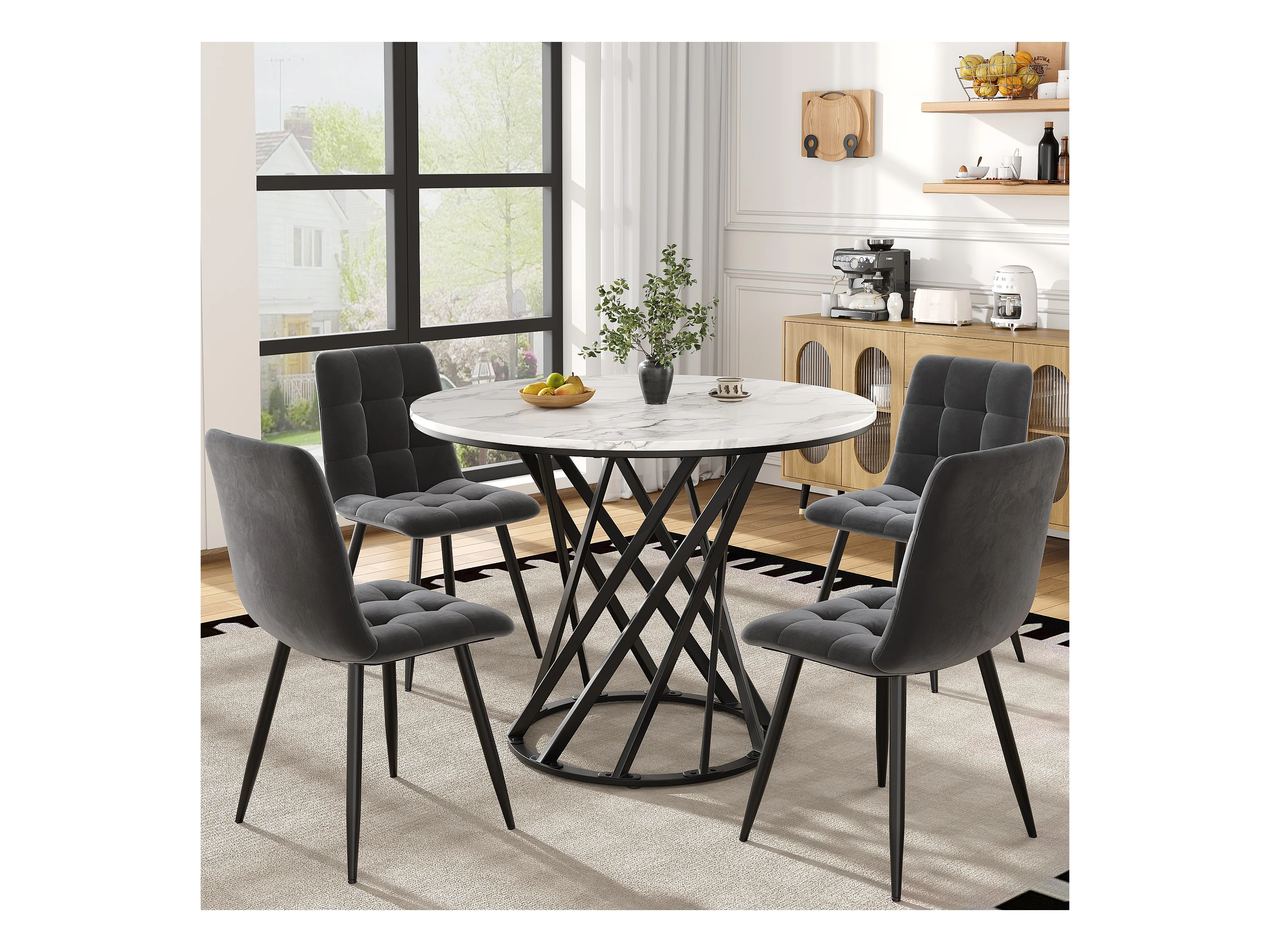 Lot de 5 table à manger et chaises - 80 x 80 x 76 cm - table plateau en MDF + 4 chaises en velours - MDF + Métal - noir