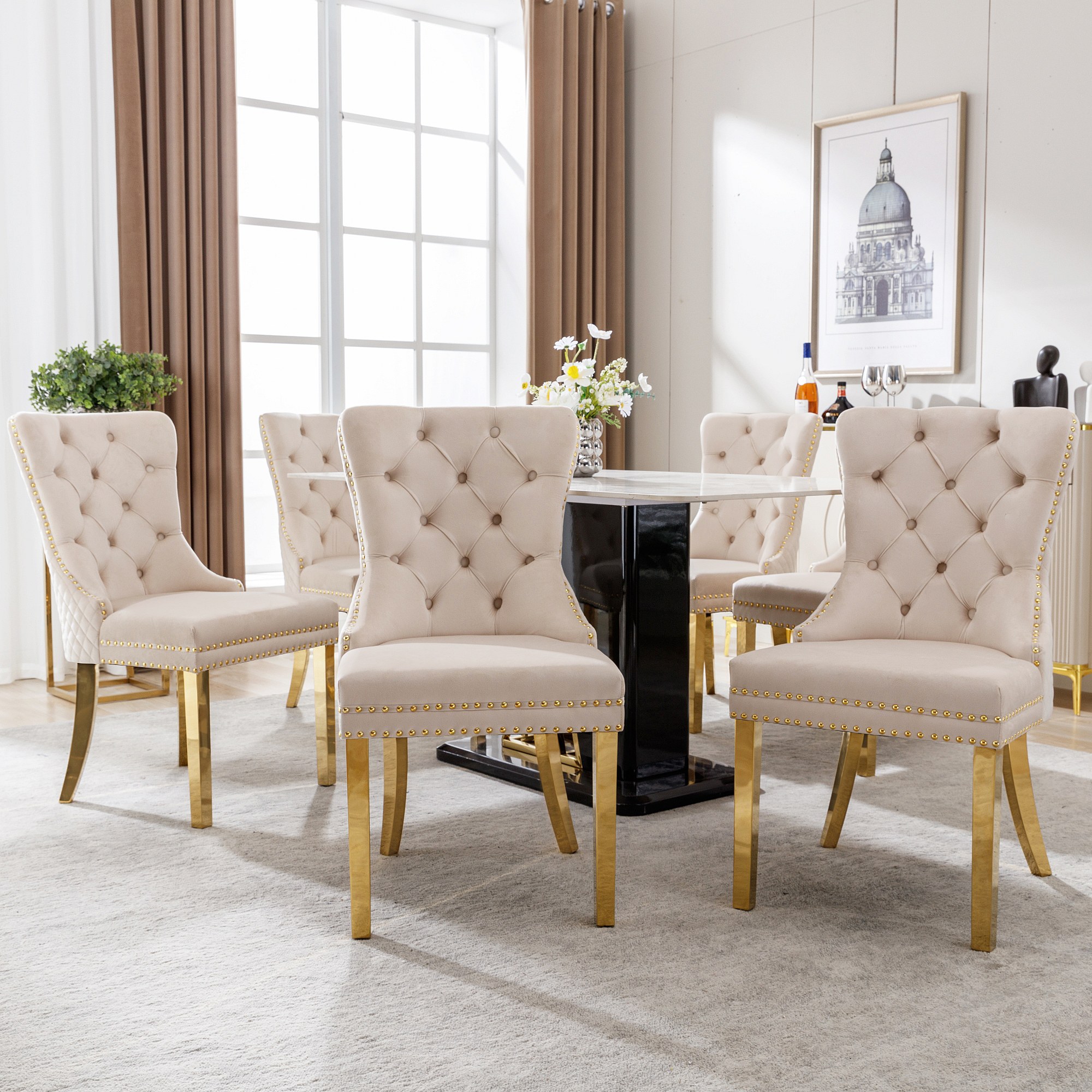 Lot de 6 chaises à manger avec dossier rembourré - pieds en métal doré - velours - beige