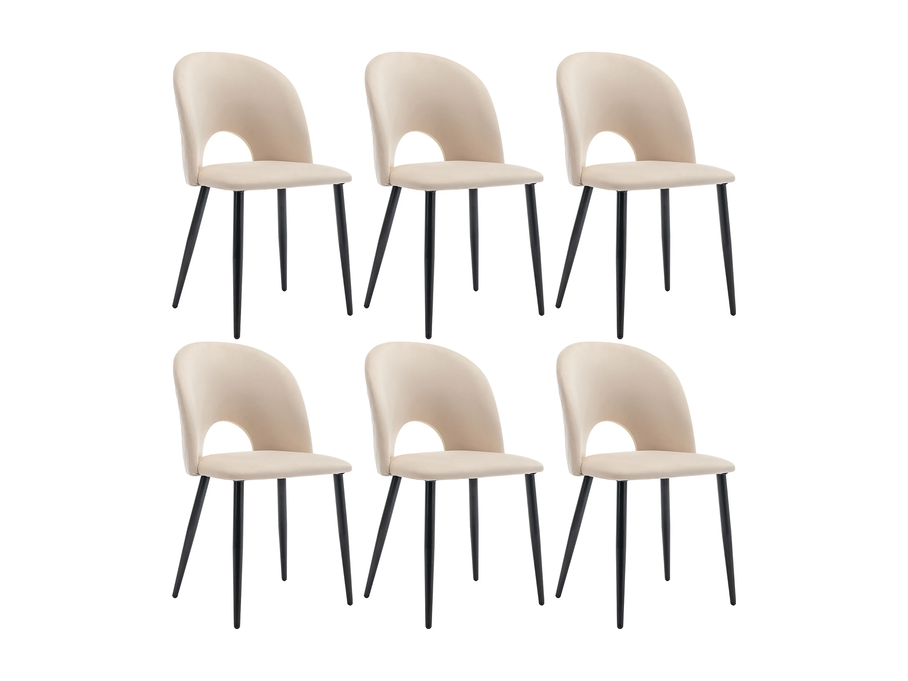 Lot de 6 chaises de salle à manger en velours beige avec dossier et pieds réglables