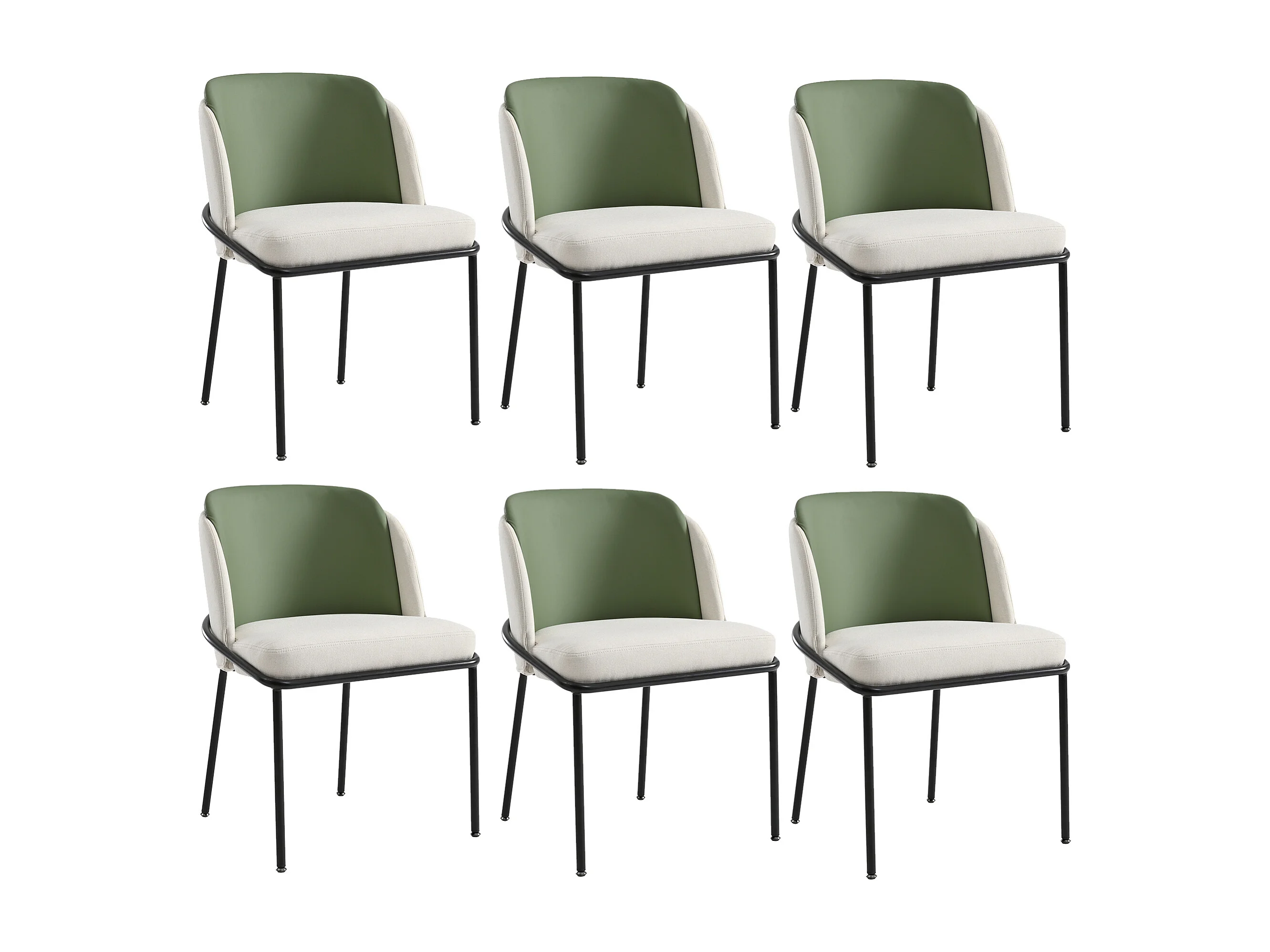 Lot de 6 chaises modernes à pieds inclinés - 55 x 55 x 85 cm - pieds noirs - métal + bois - beige + vert