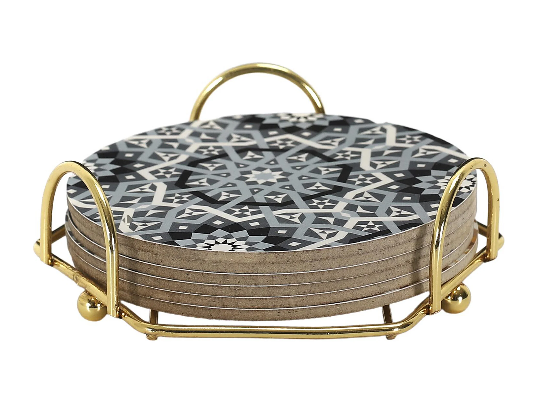 Lot de 6 dessous de verre en bois avec son support en métal 10 cm MEDINA gris